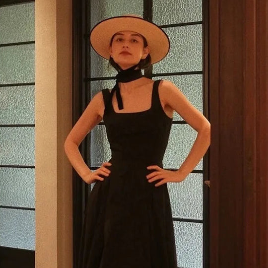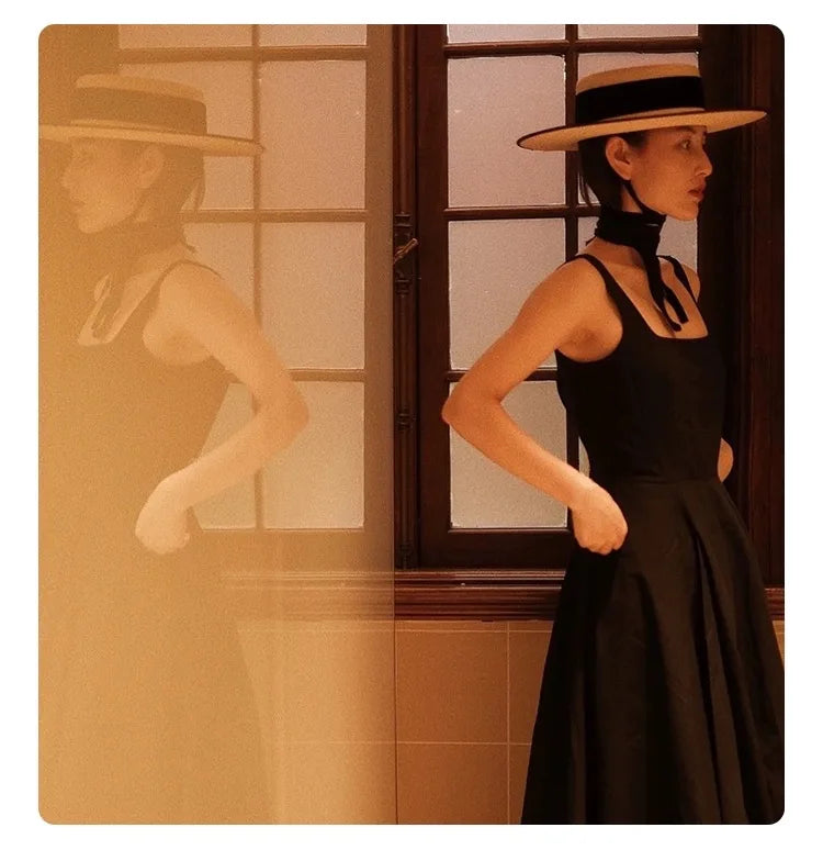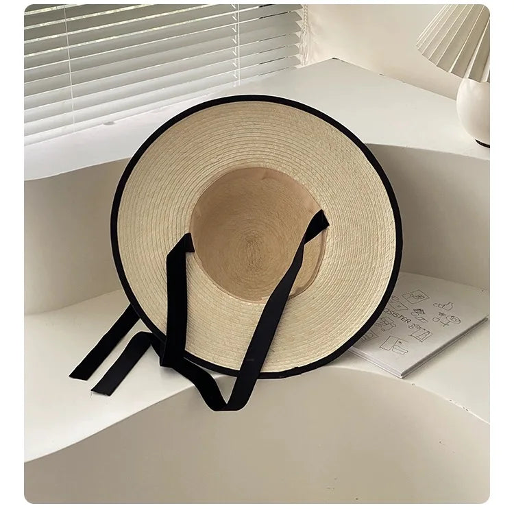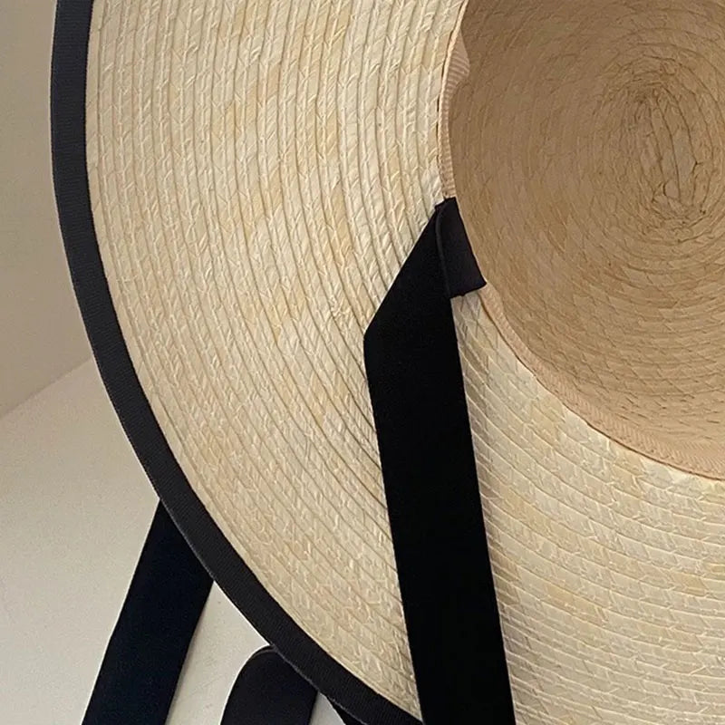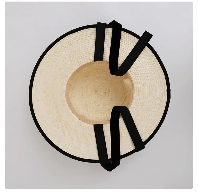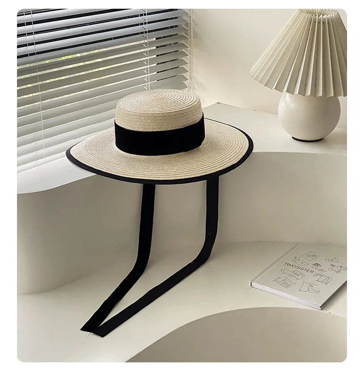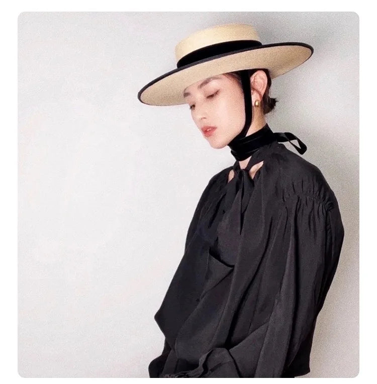 Handmade Vintage Sunflower Grass Black Ribbon Flat Top Peaked Hat for Women
