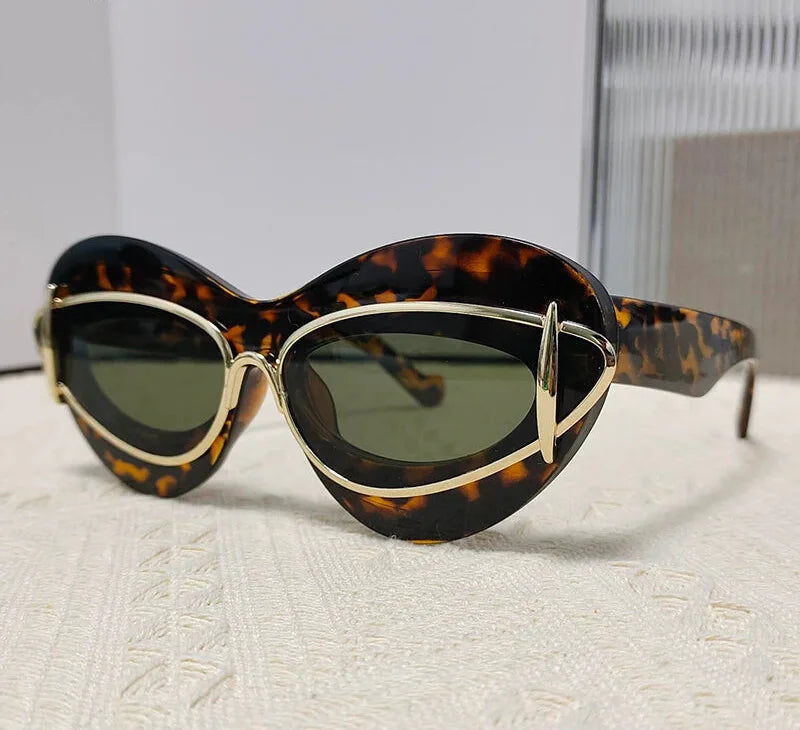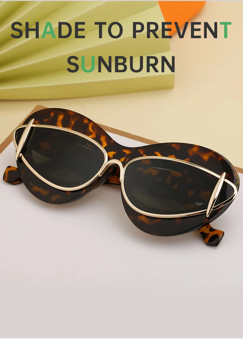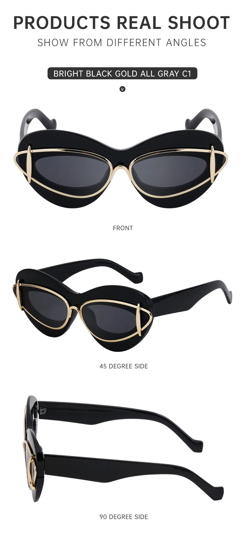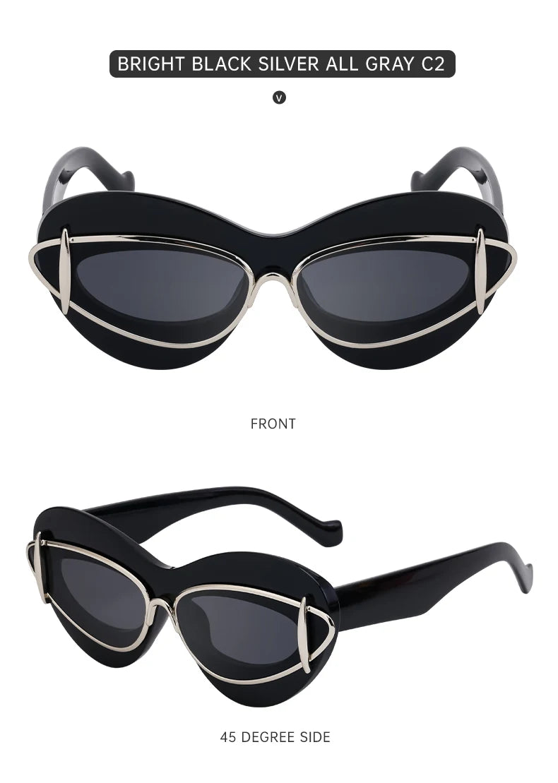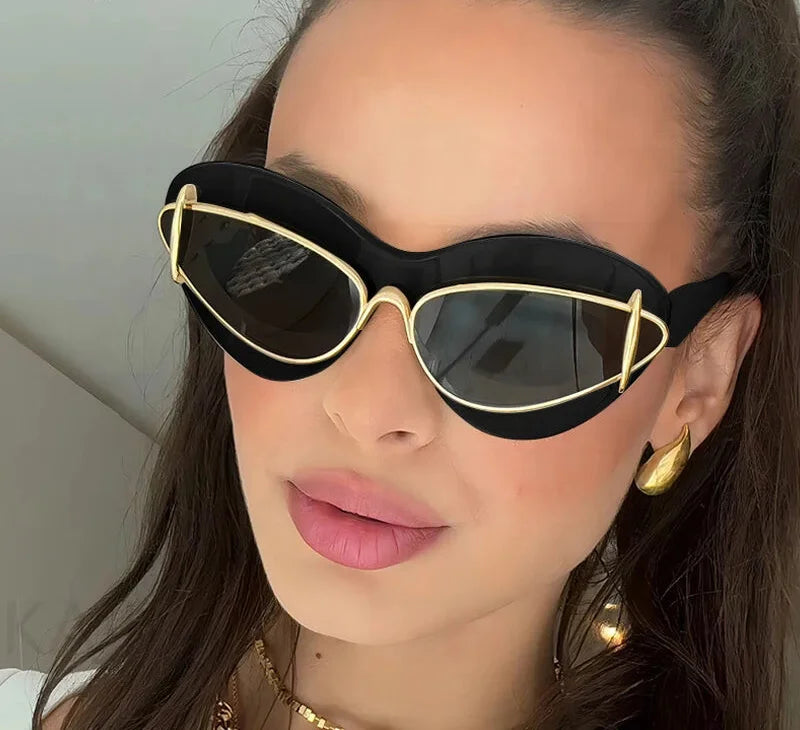 Sexy Luxury Vintage UV400 Punk Cateye Double Frame Sunglasses for Women