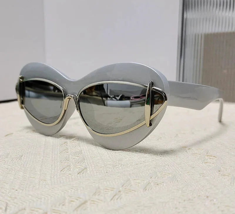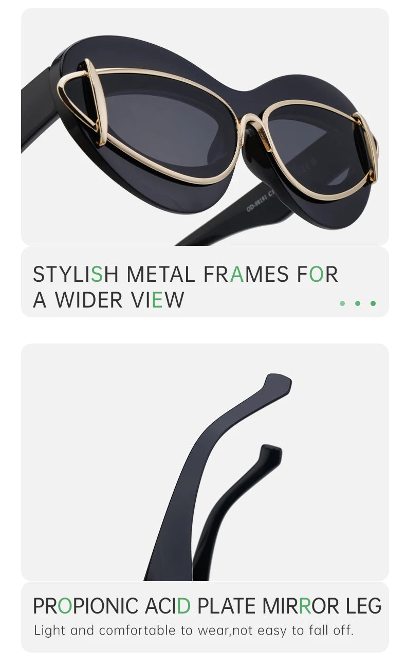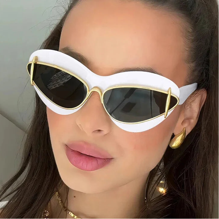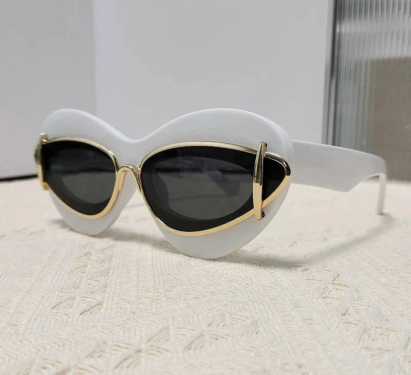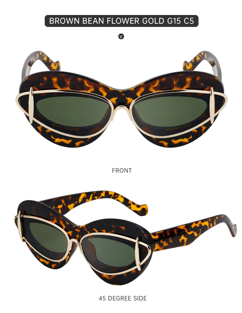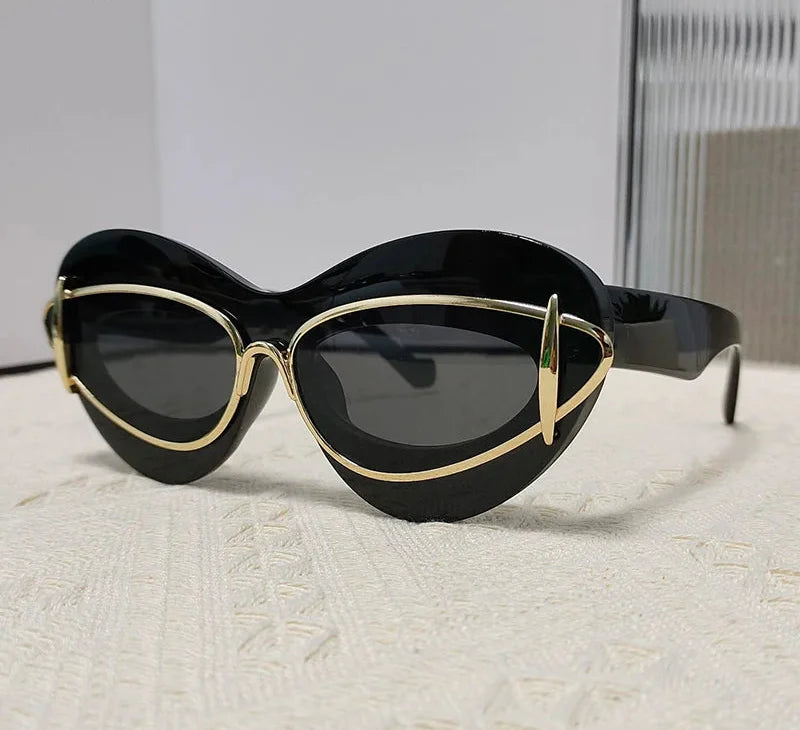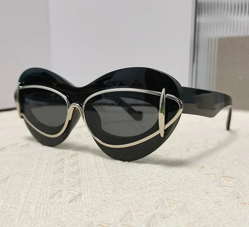 Sexy Luxury Vintage UV400 Punk Cateye Double Frame Sunglasses for Women