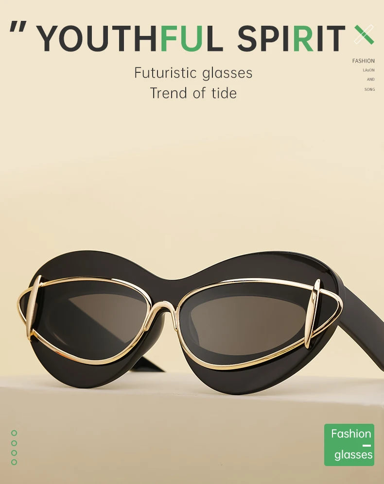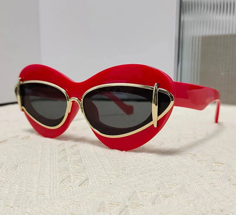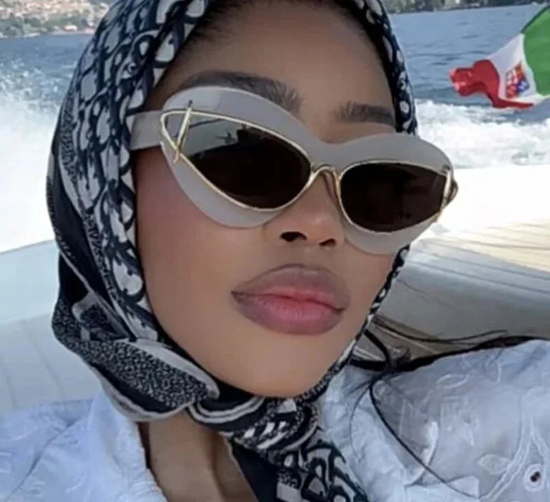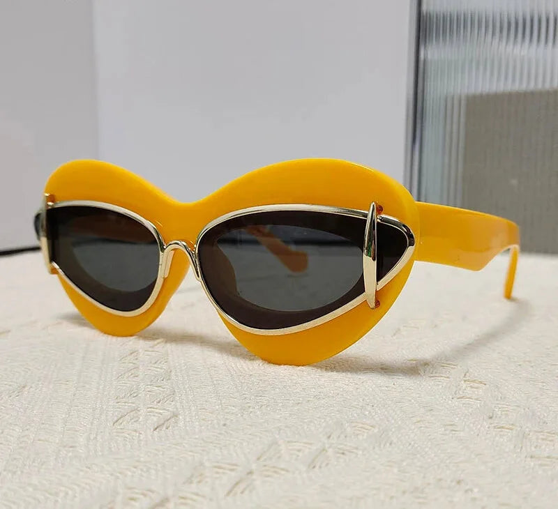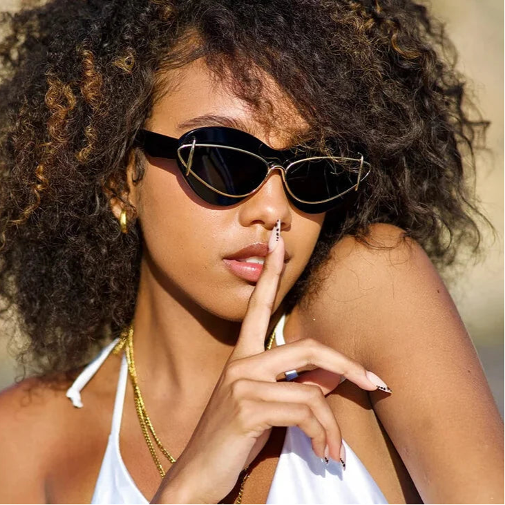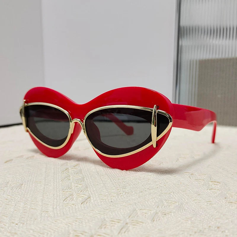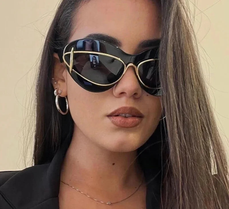 Sexy Luxury Vintage UV400 Punk Cateye Double Frame Sunglasses for Women