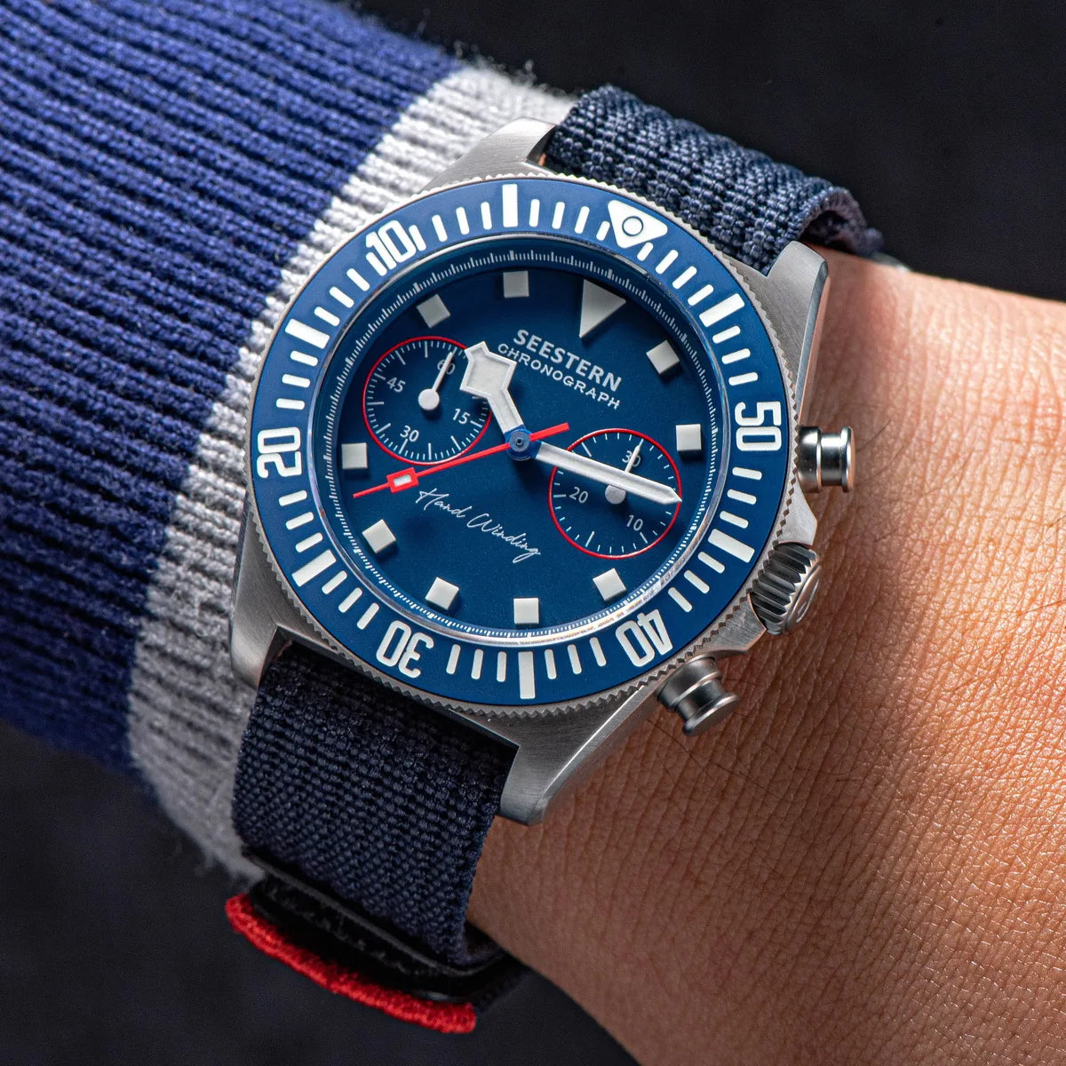 Made of a nylon strap and stainless steel casing that ensures durability and a stylish look, this watch is the right choice for everyday wear. This exceptional watch has waterproof and chronograph features. Quality, perfect craftsmanship and smart look make this watch a great accessory!
