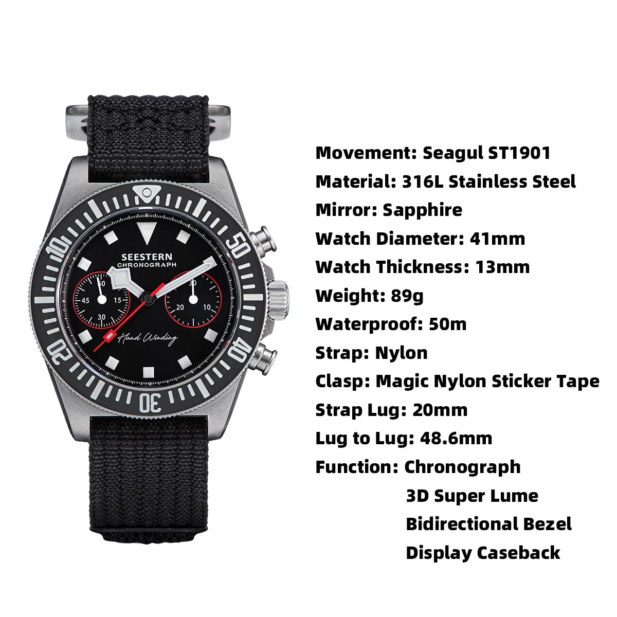 Movement: Mechanical Hand Wind,Seagul ST1901 Handwind