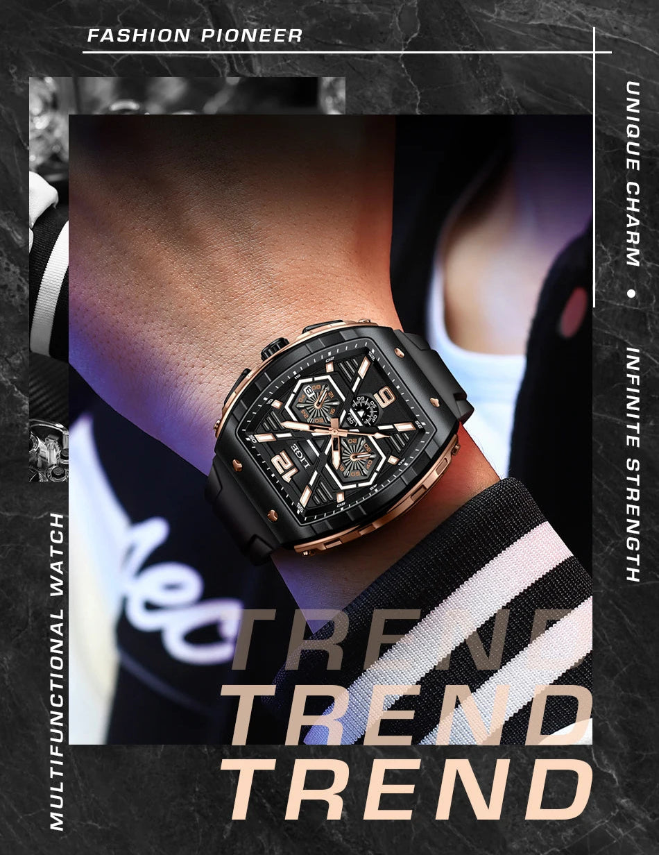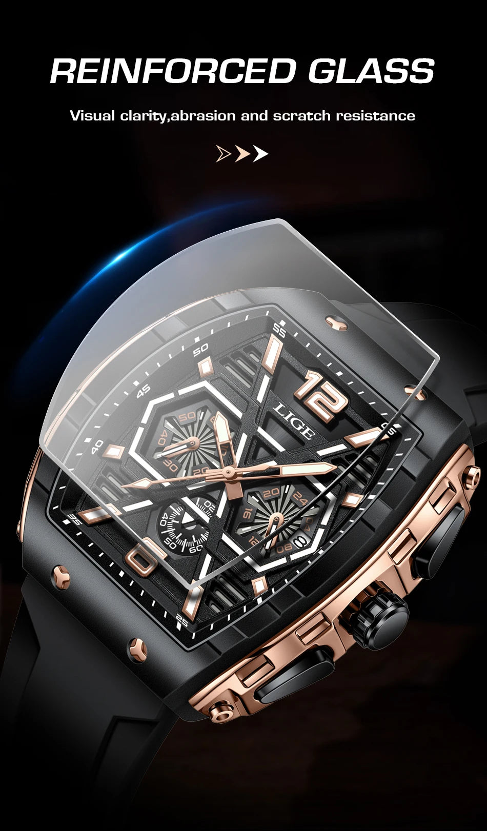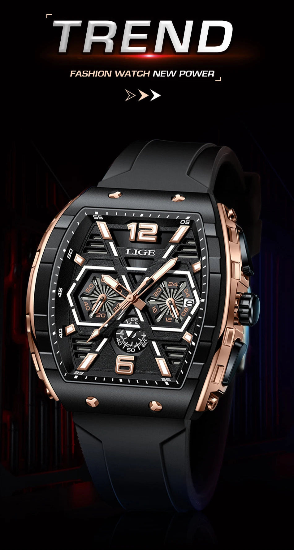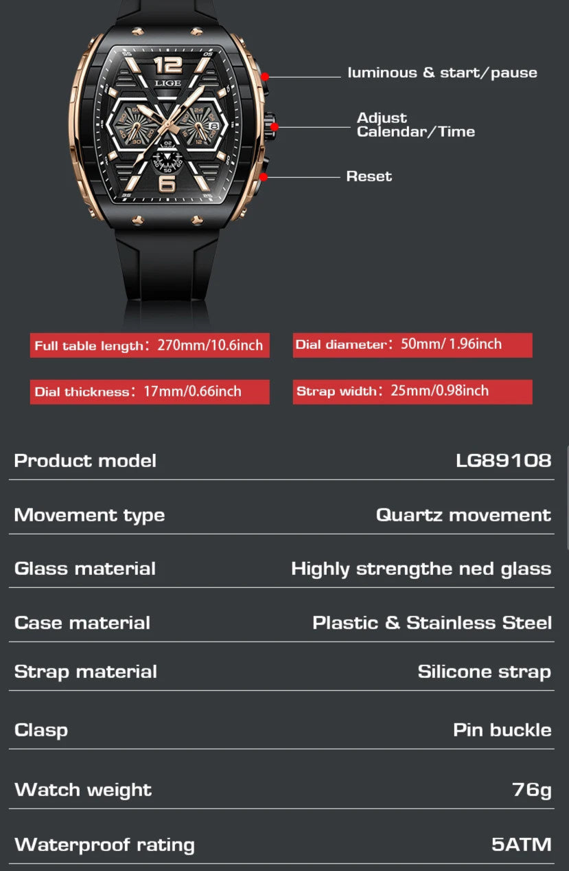 Made of a silicone strap and alloy casing that ensures durability and a stylish look, this men's luxury style watch is perfect for casual and business casual outfits. With stop watch, back light, shock resistance, complete calendar and luminous hands, you will feel convenient using it. A lovely, elegant watch for men!
