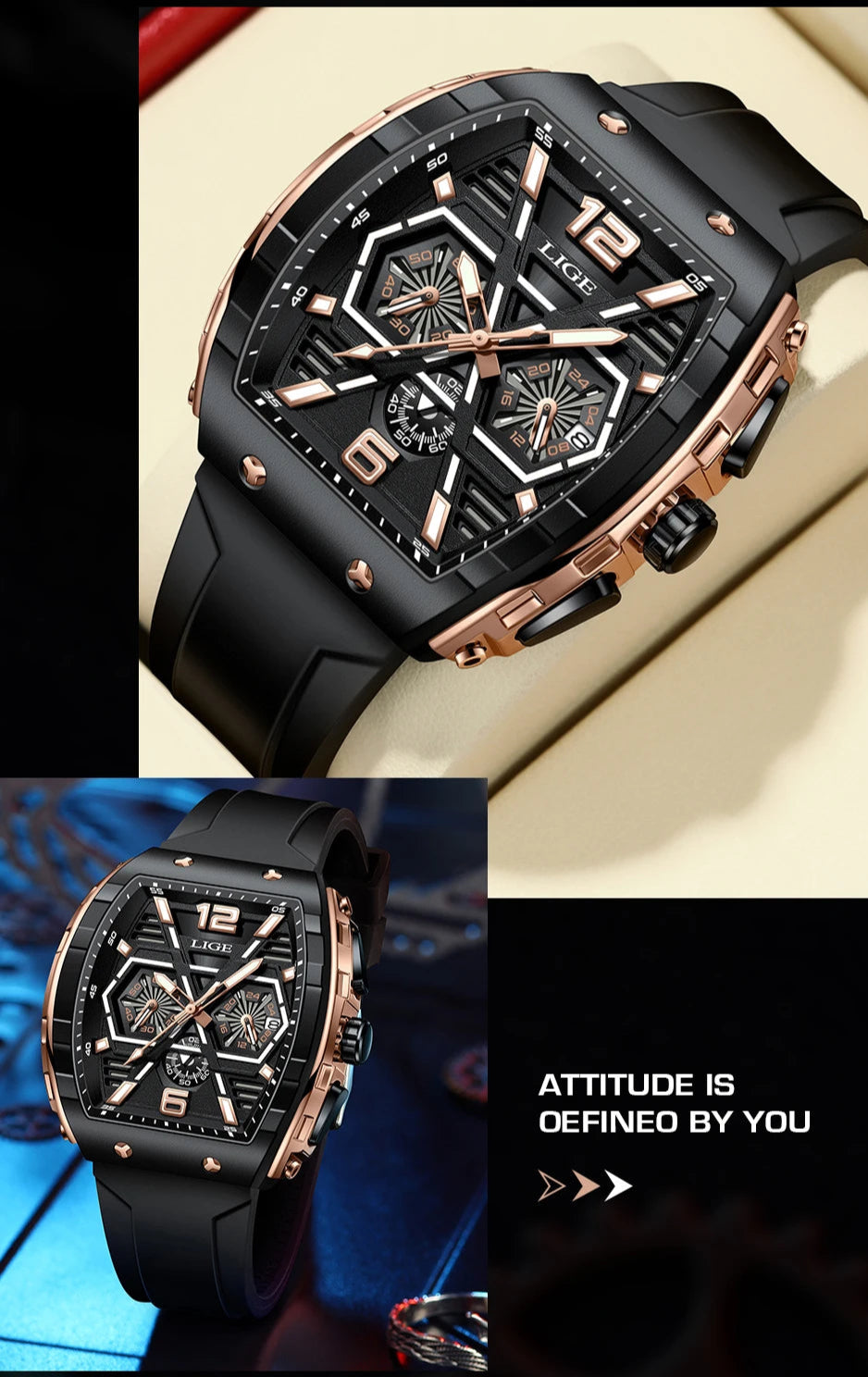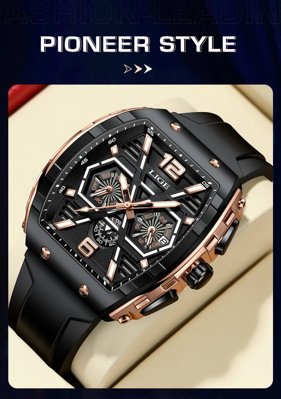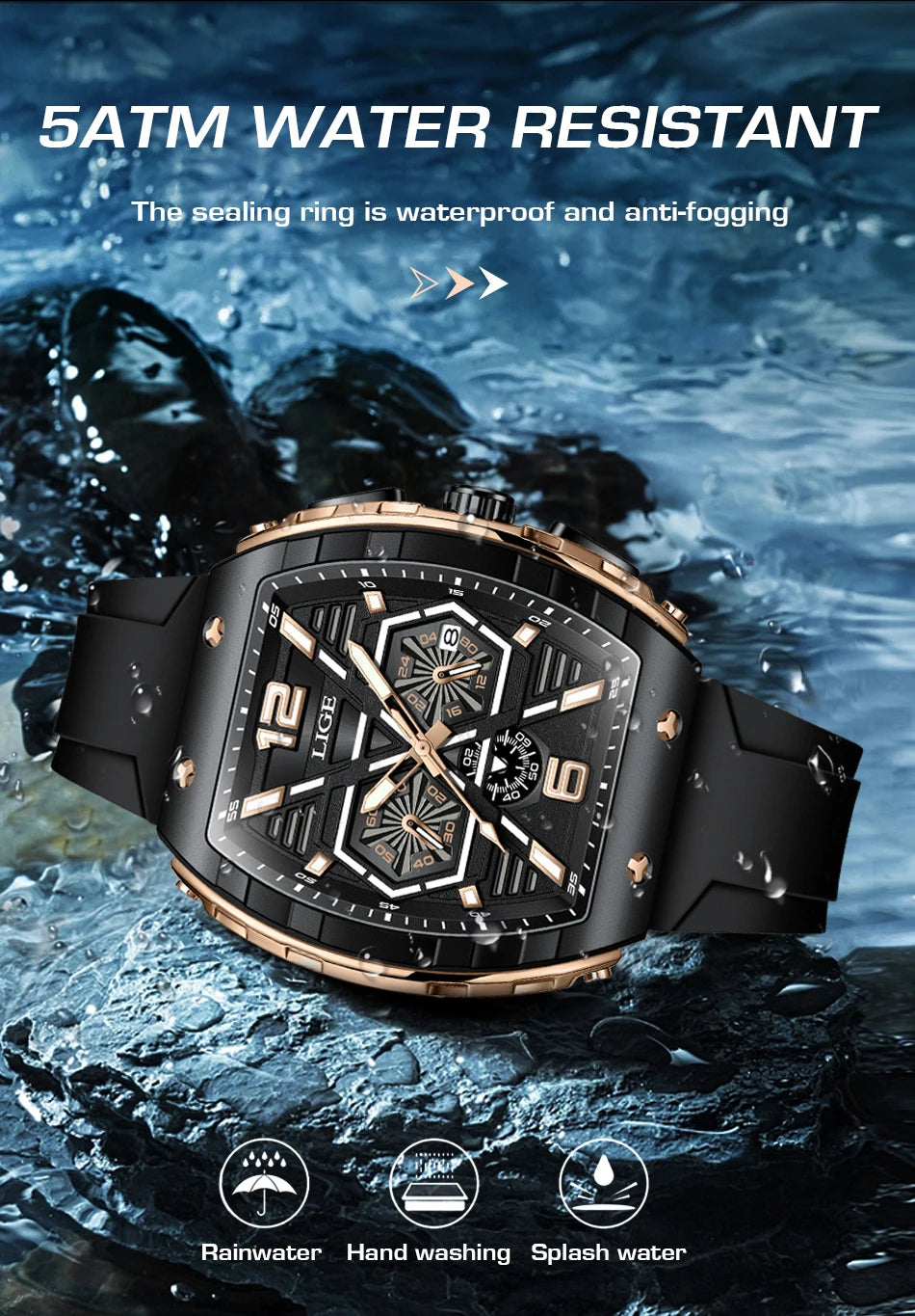 Made of a silicone strap and alloy casing that ensures durability and a stylish look, this men's luxury style watch is perfect for casual and business casual outfits. With stop watch, back light, shock resistance, complete calendar and luminous hands, you will feel convenient using it. A lovely, elegant watch for men!