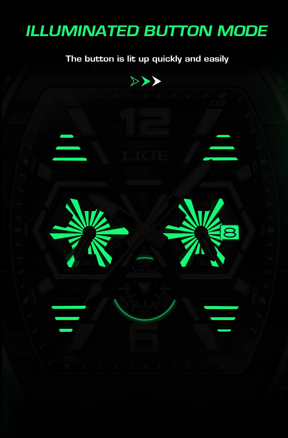 Feature: STOP WATCH,Back Light,Shock Resistant,Luminous,Auto Date,Chronograph,Complete Calendar,Water Resistant,swim,luminous hands