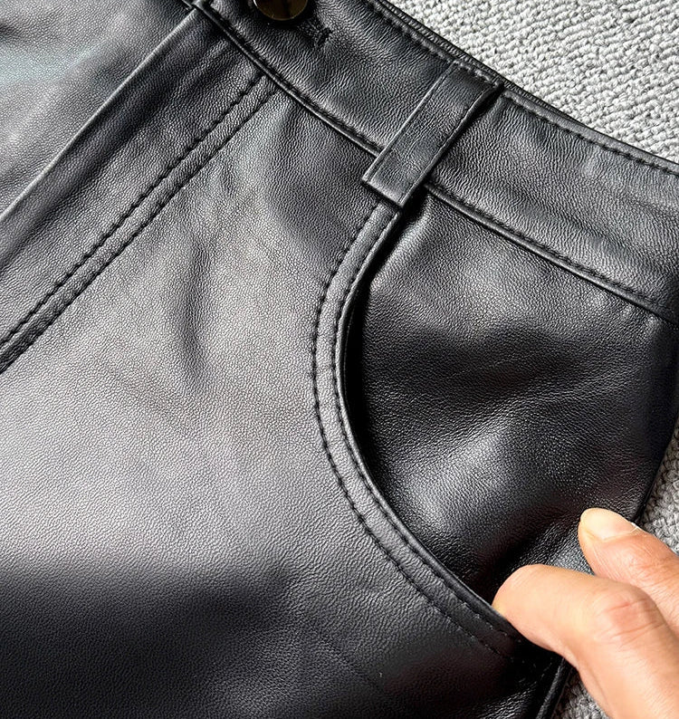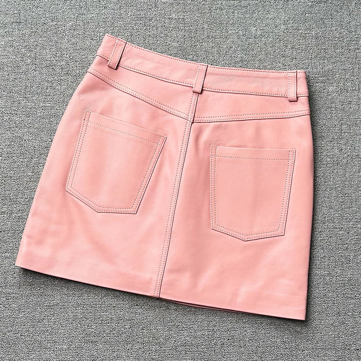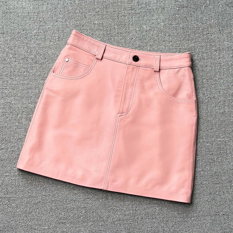 Autumn Korean Top Layer Sheepskin Slim Mini Skirts for Women