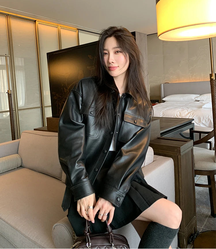 Wearing this women's slim-fit jacket will keep you cozy and amp up your style. The genuine leather is durable and adds a modern touch. The pockets and belt make it more utilitarian and create a fashion-forward statement. Elevate your style effortlessly!