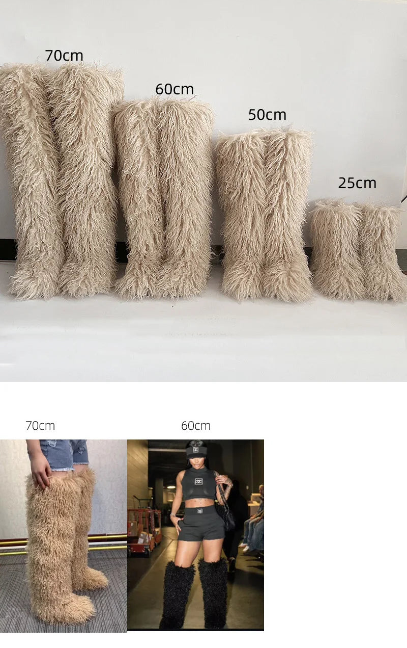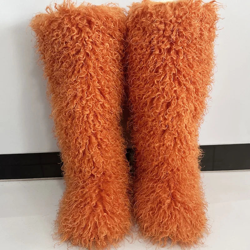 Women's Orange Warm Plush Faux Fur 70cm Long Over Knee Snow Boots