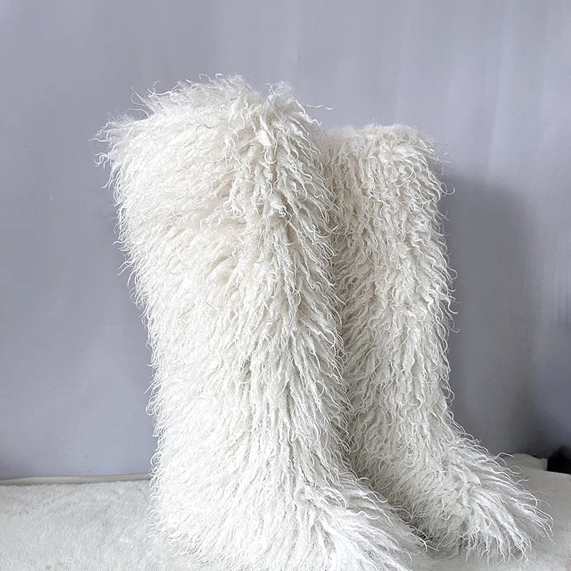 Women's White Warm Plush Faux Fur 50cm Long Over Knee Snow Boots