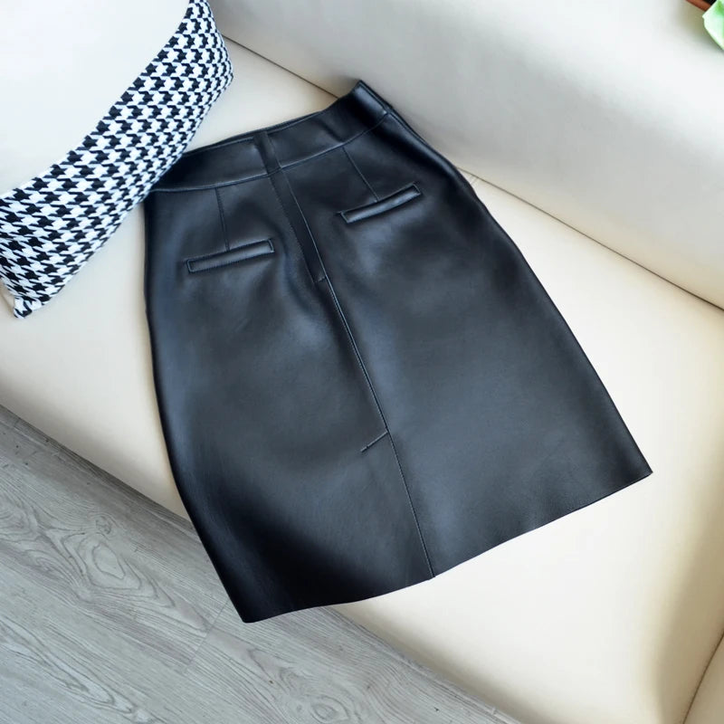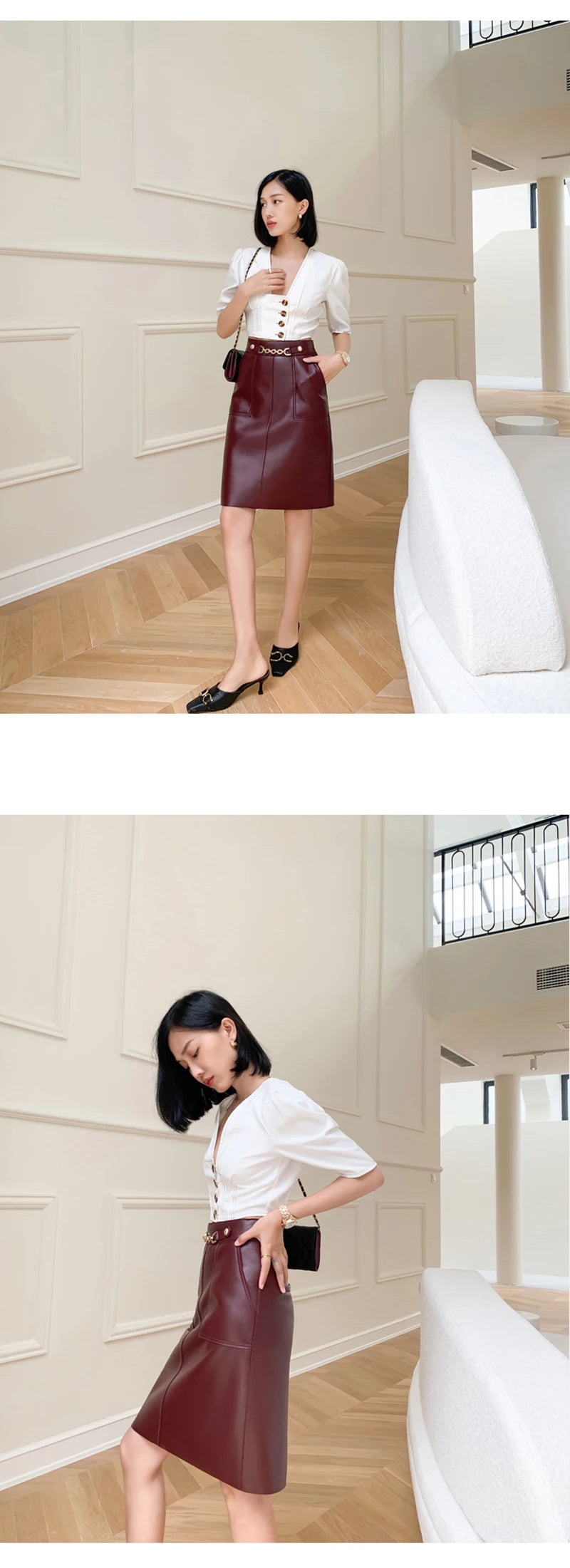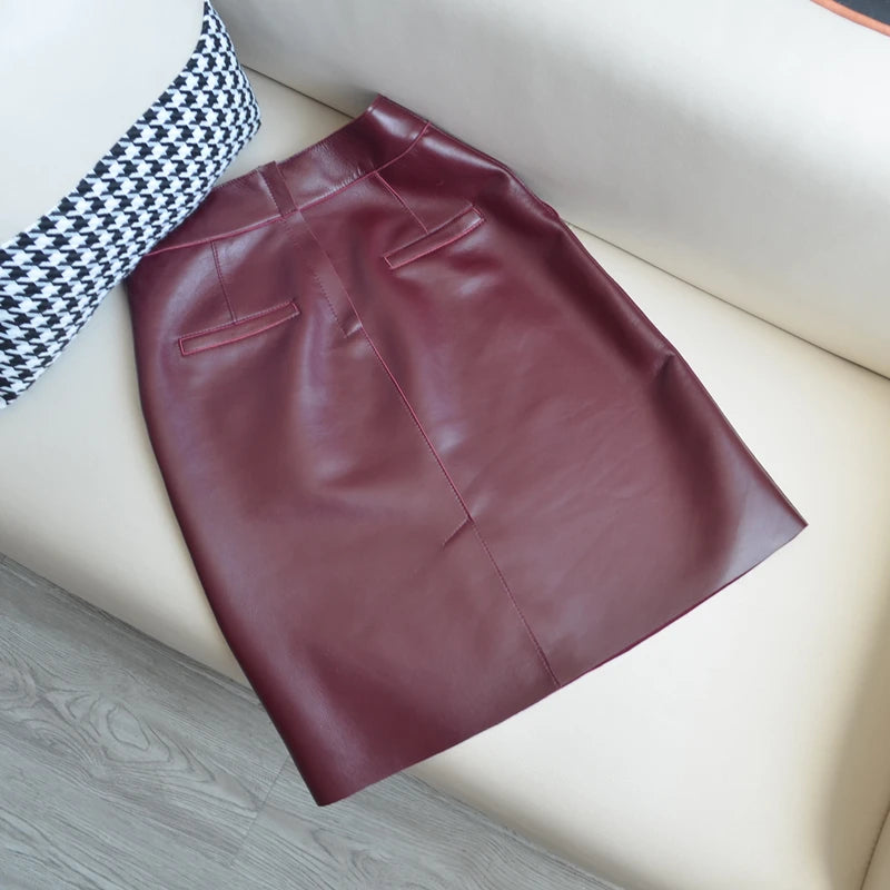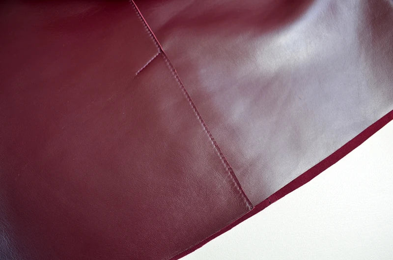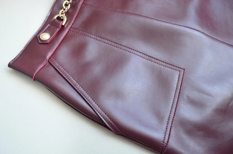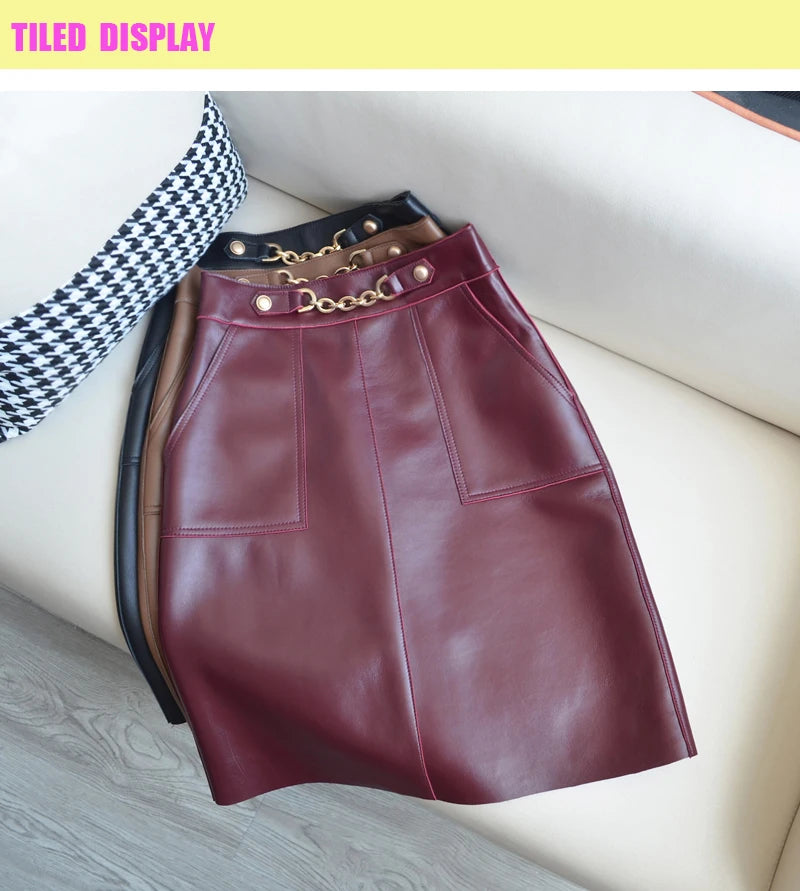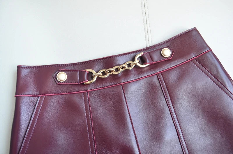 This women's midi A-line skirt is your go-to choice for comfort and style. The sleek design with sheepskin leather makes it comfortable and perfect for everyday wear. The metal chain, high waistline, wrap hip style and the elegant solid color finish give it a simple yet trendy look. Shop now!