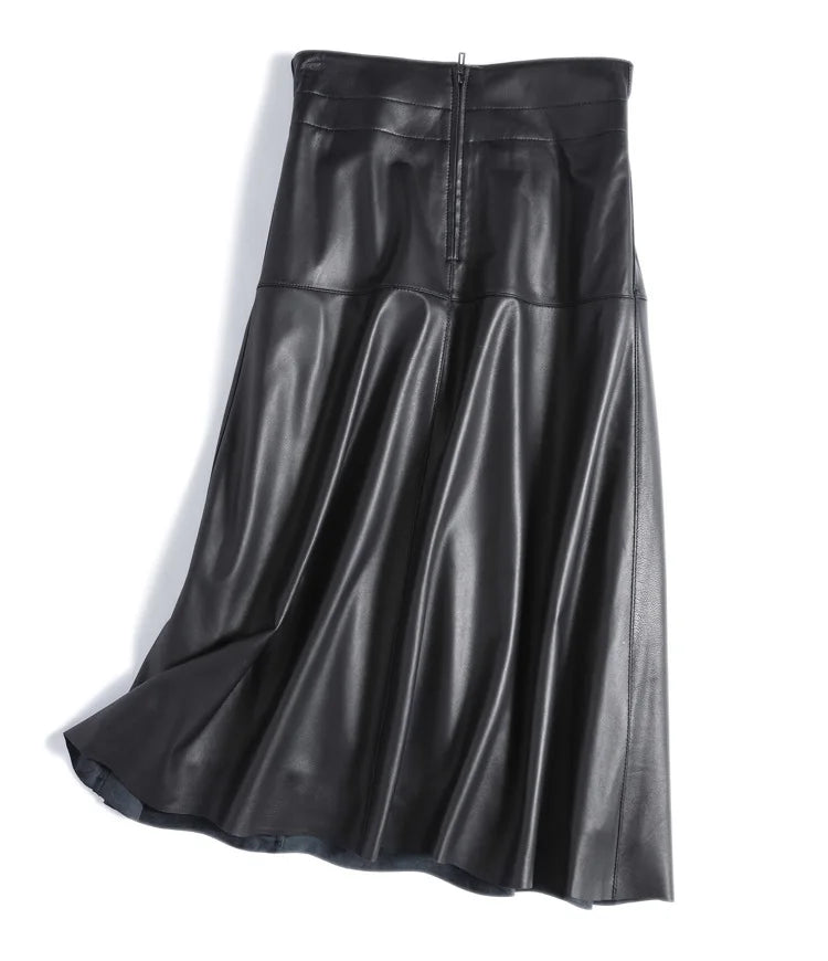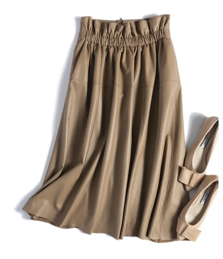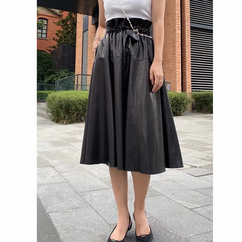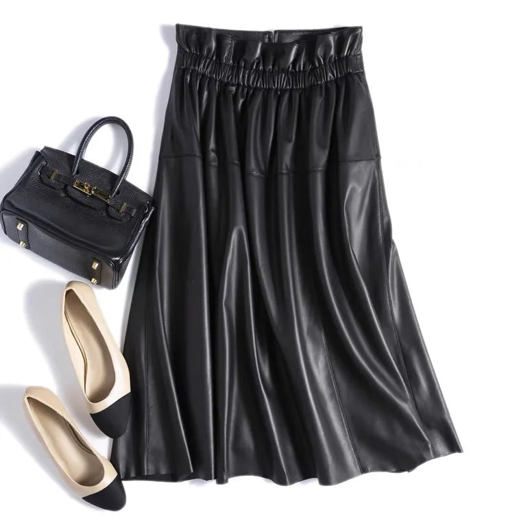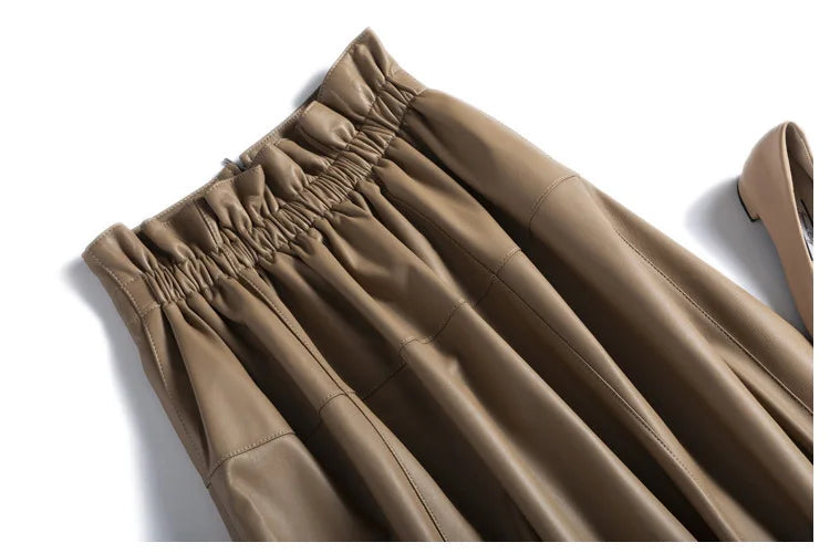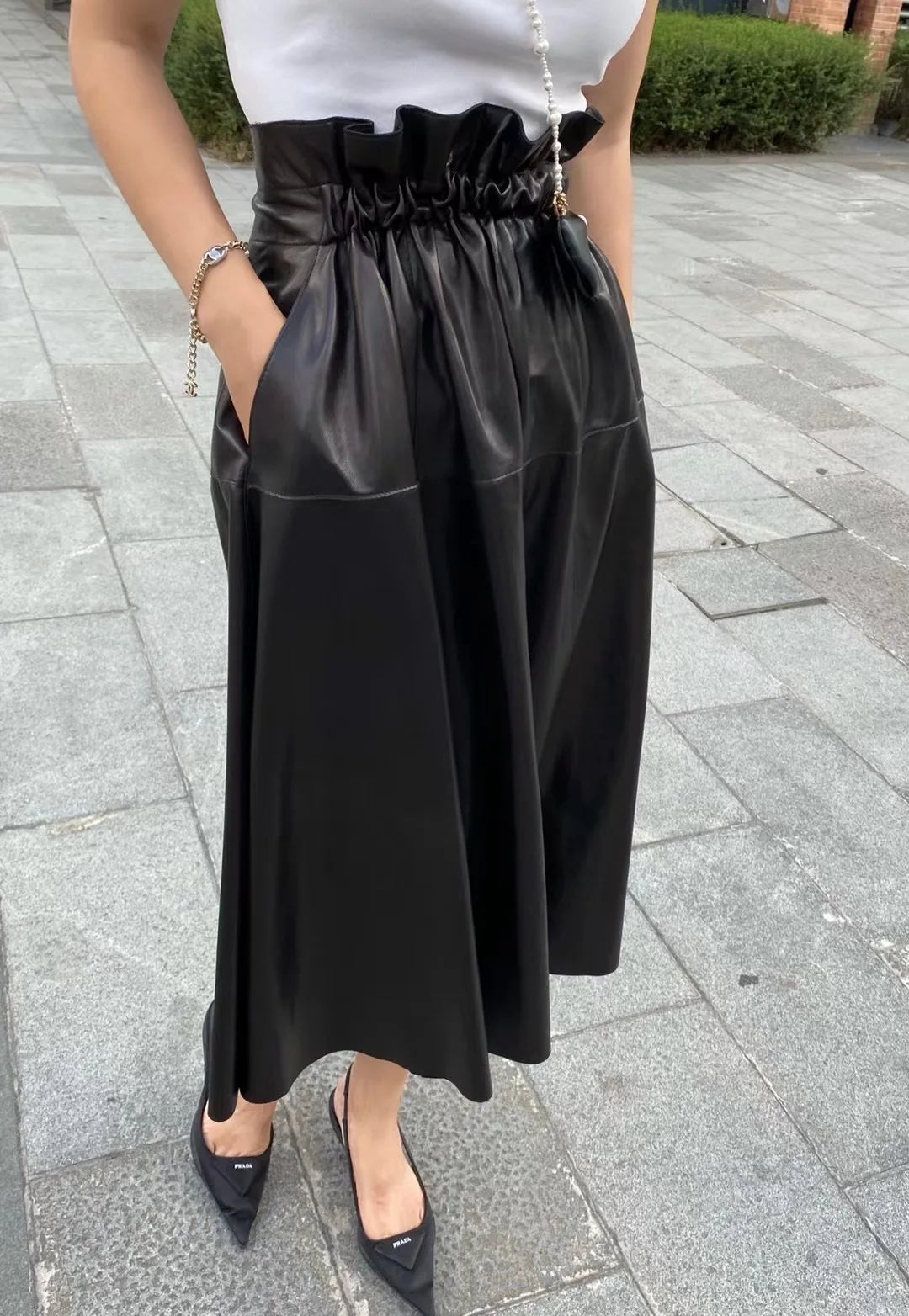 Winter Women's Genuine Sheepskin High Waist Elastic Big Swing Umbrella Skirt