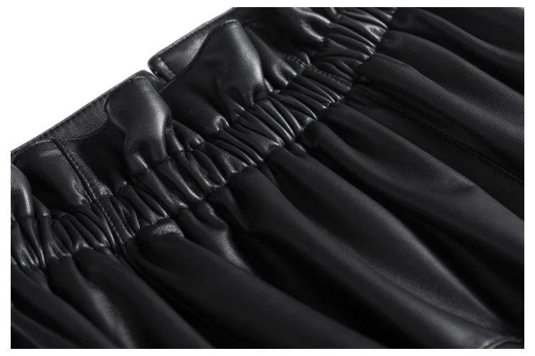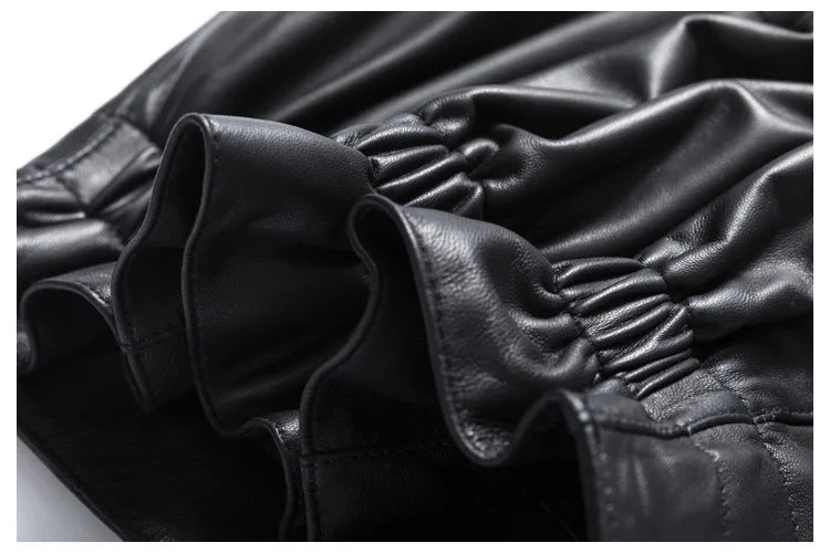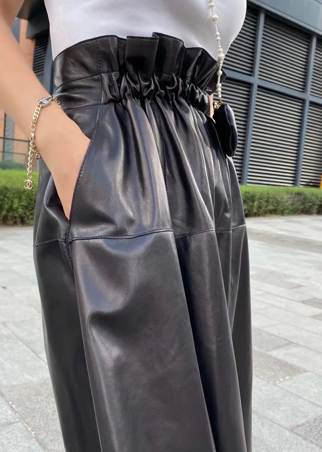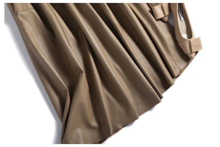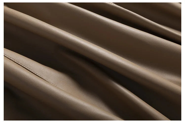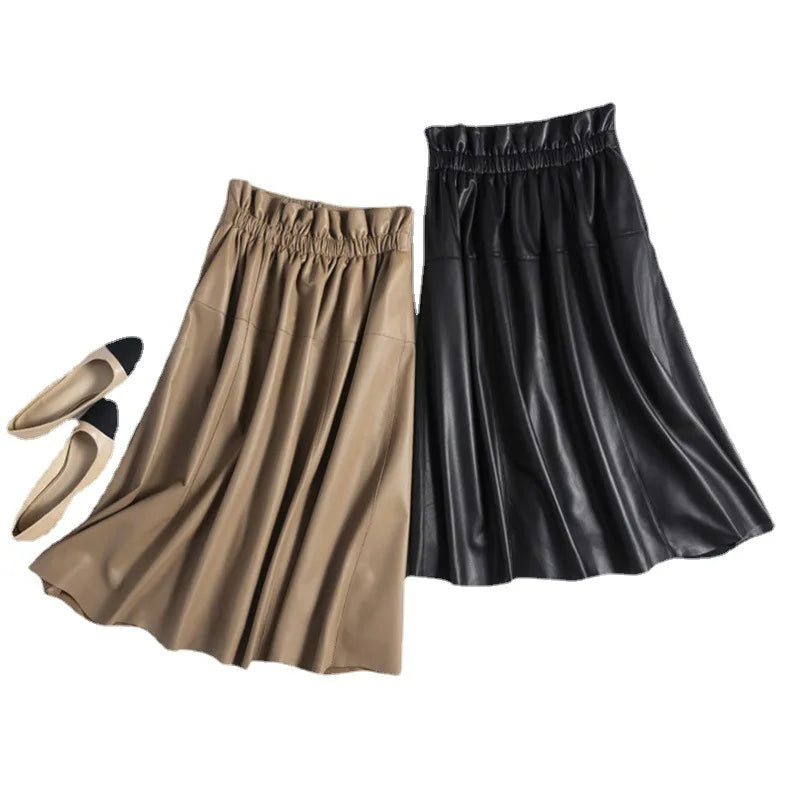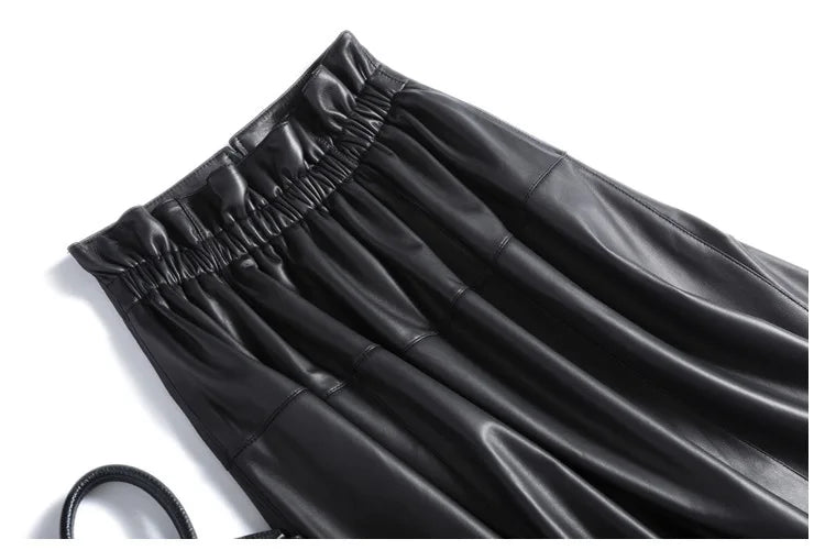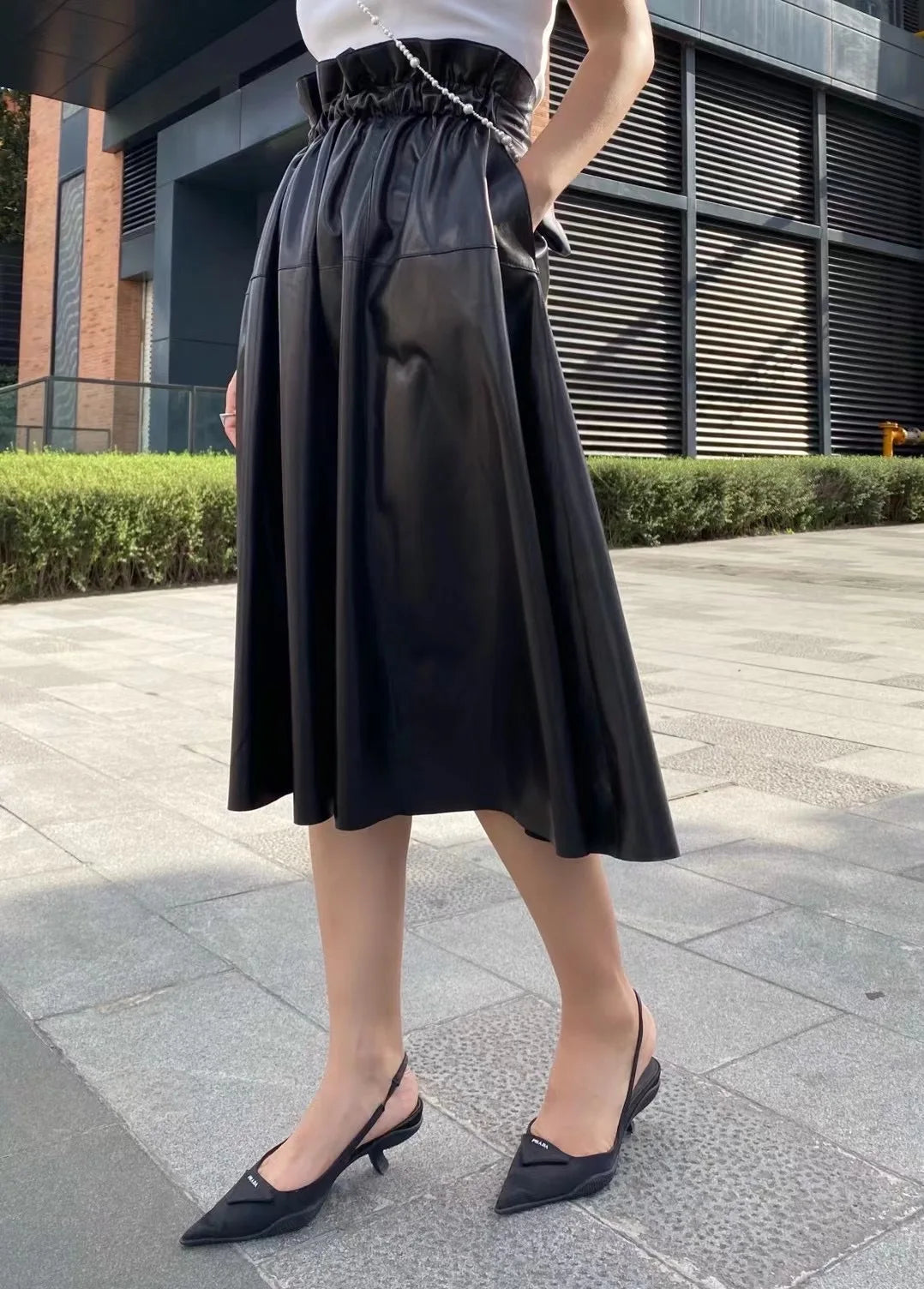 Winter Women's Genuine Sheepskin High Waist Elastic Big Swing Umbrella Skirt