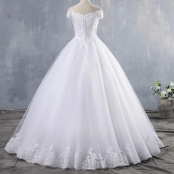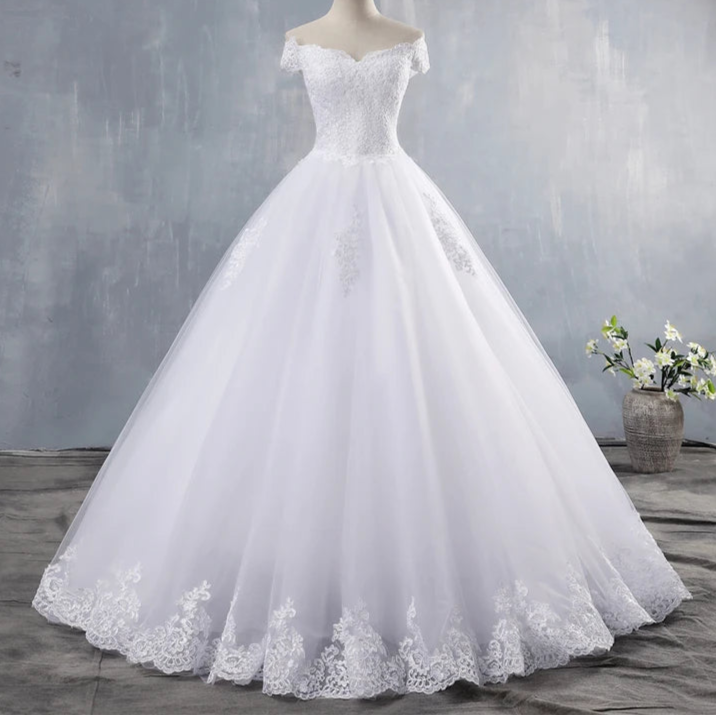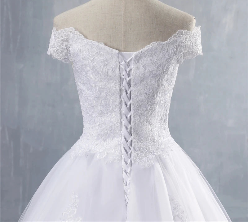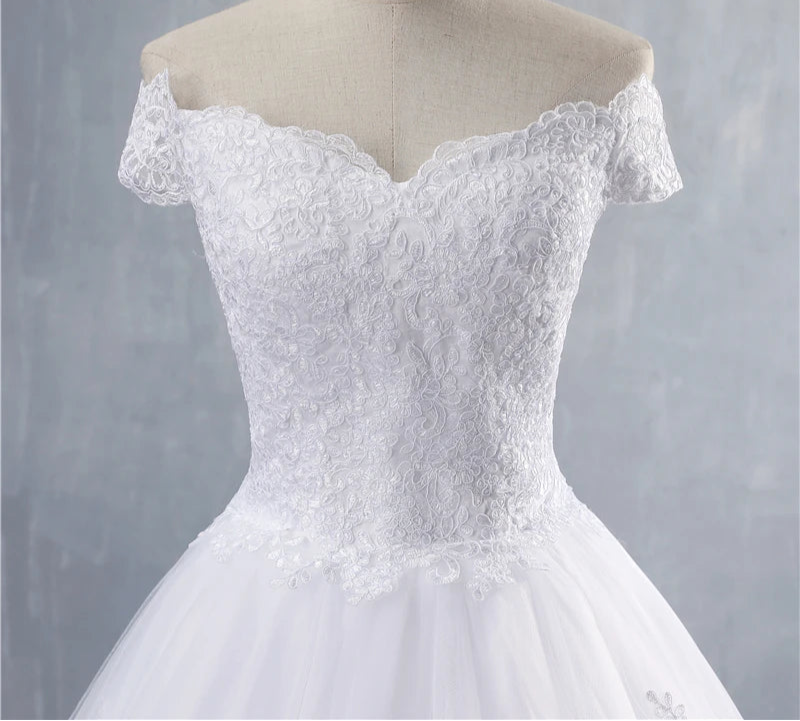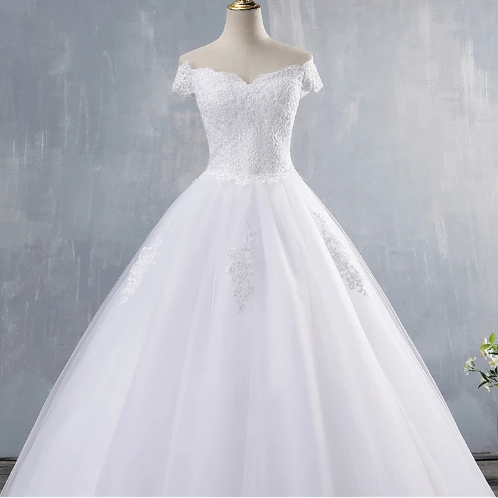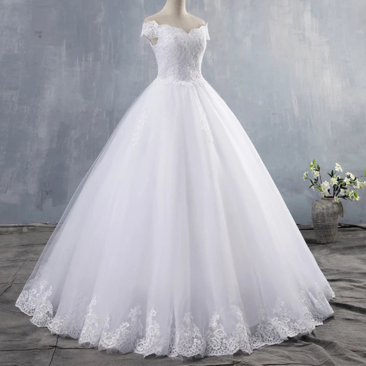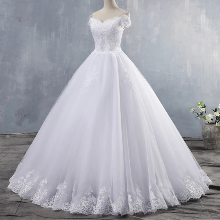White Ivory Off Shoulder Sweetheart Neck Plus Size Wedding Dress with Lace Edge