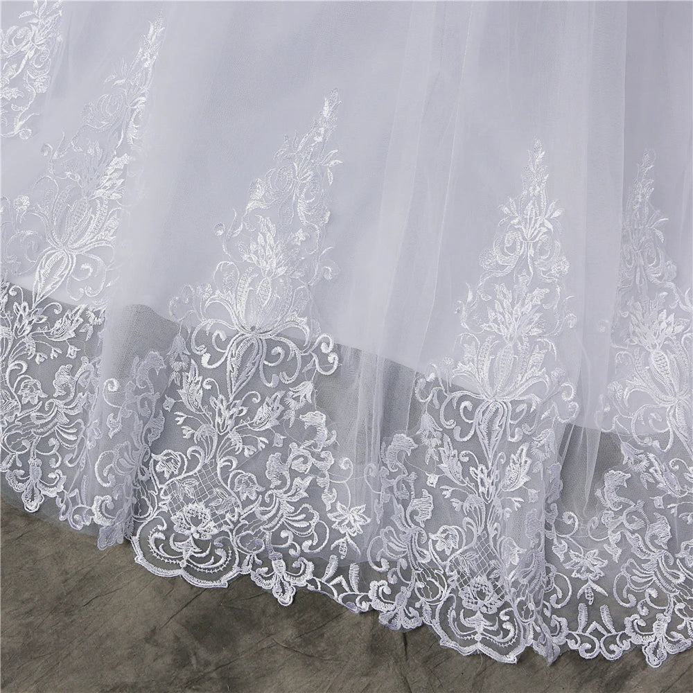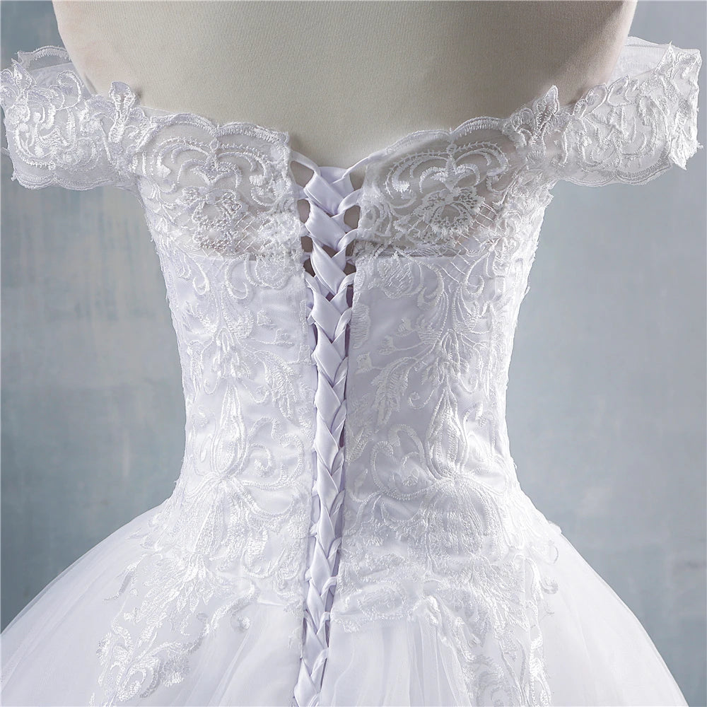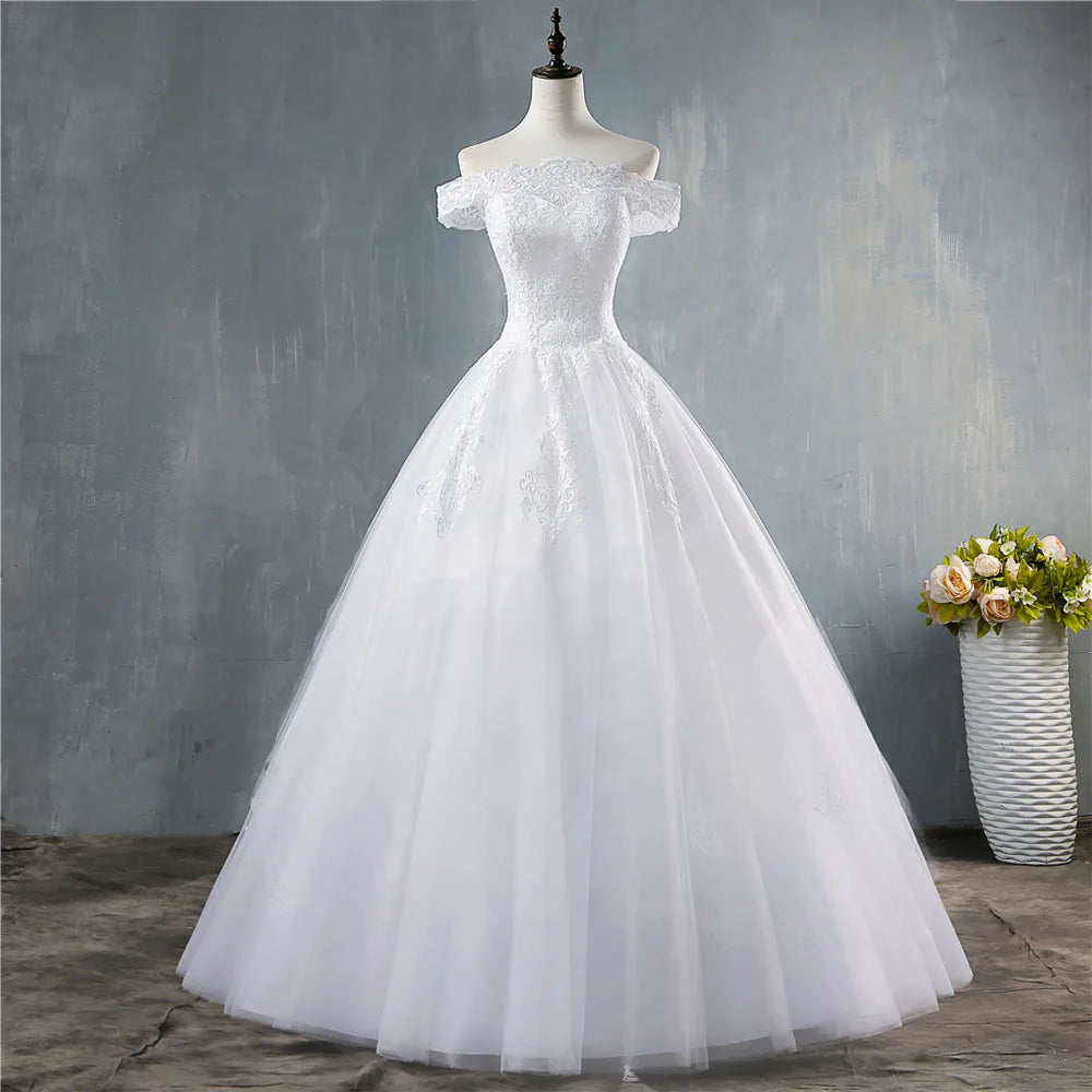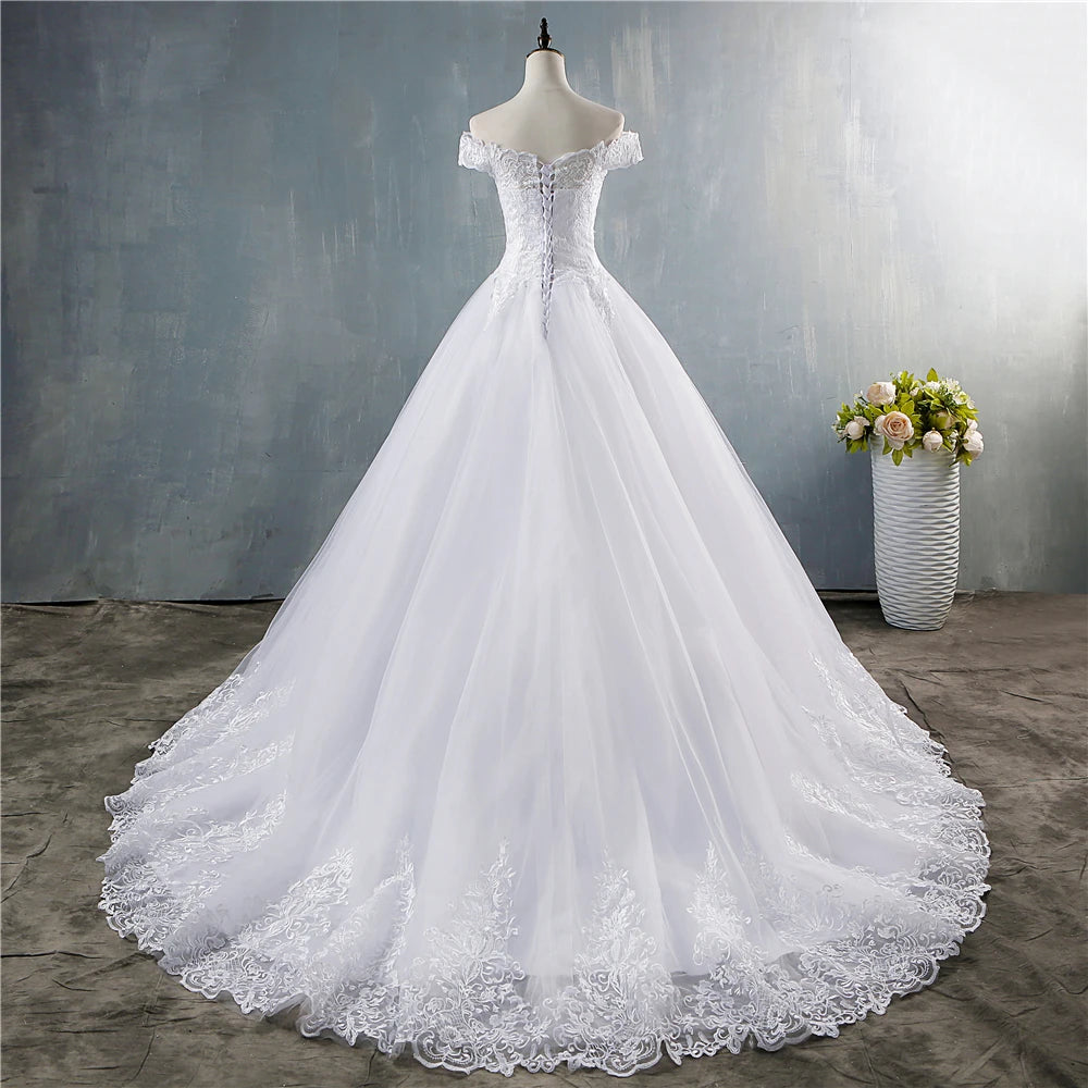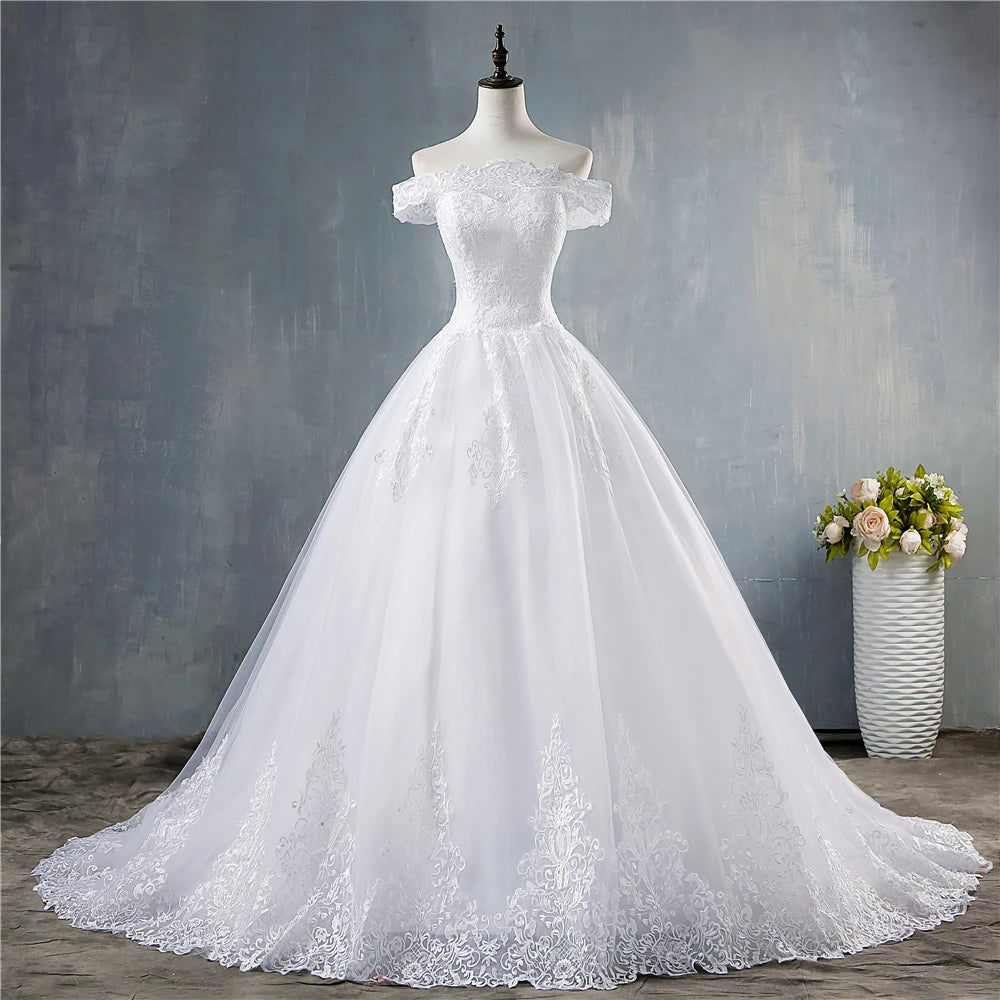 White Ivory Off-the-Shoulder Wedding Dress With and Without Lace Edge Train