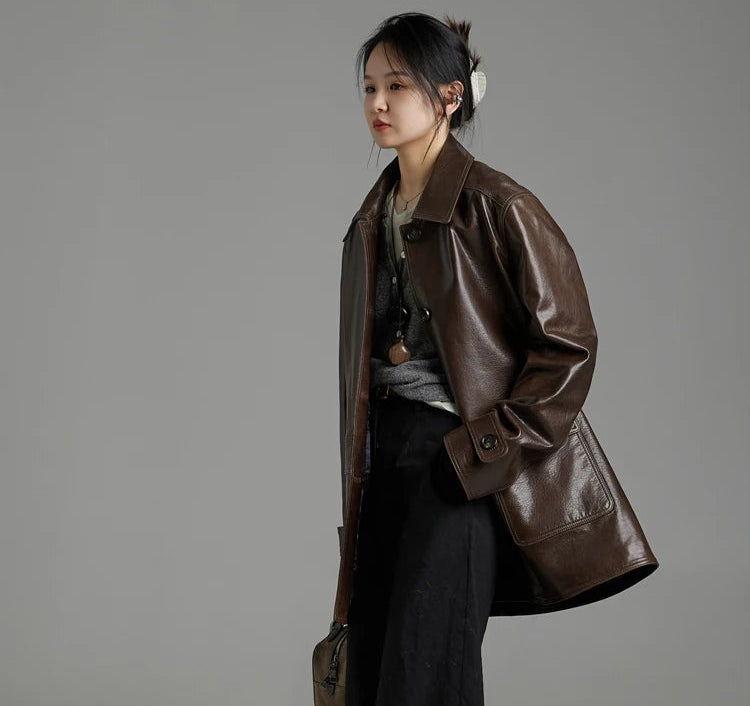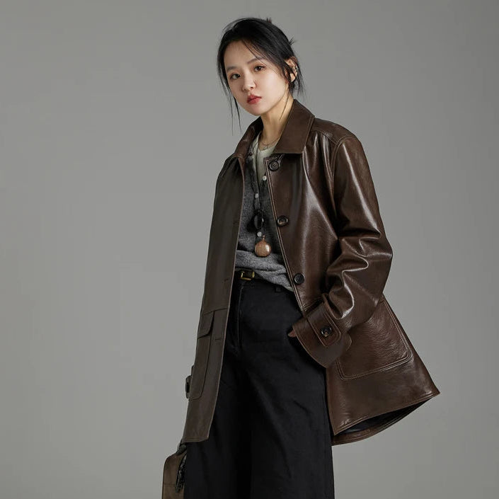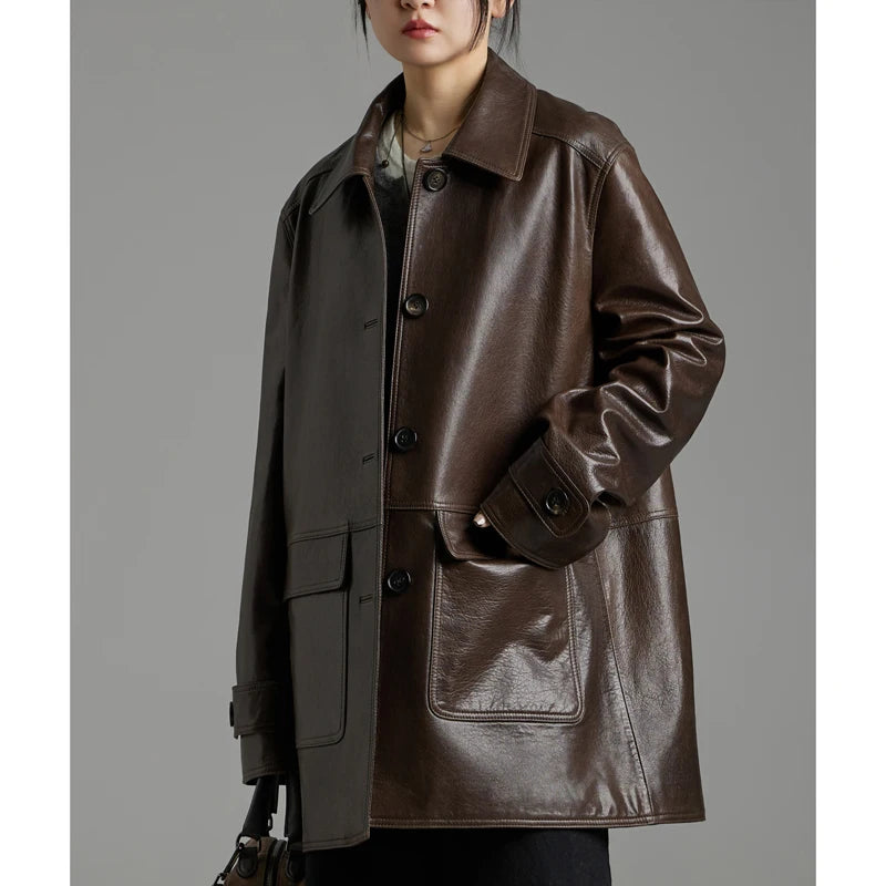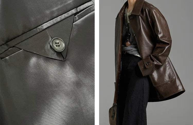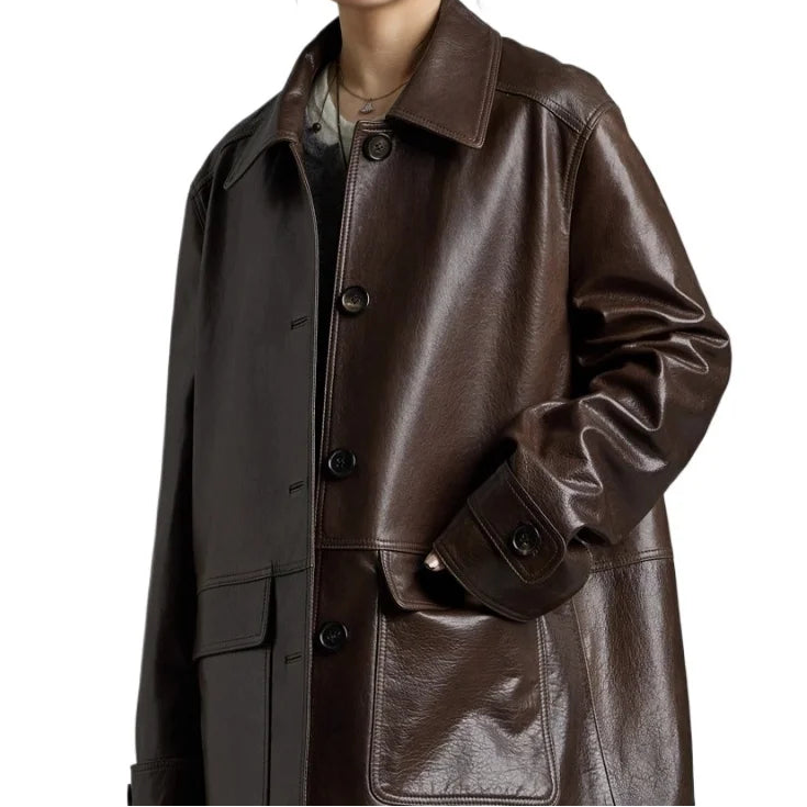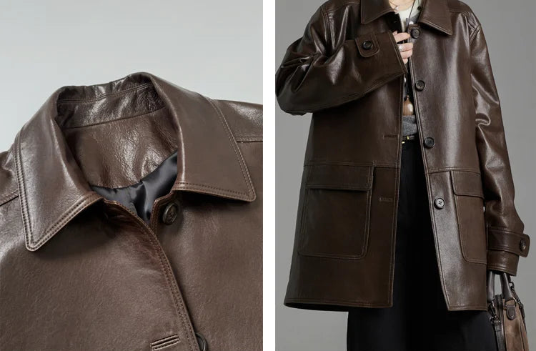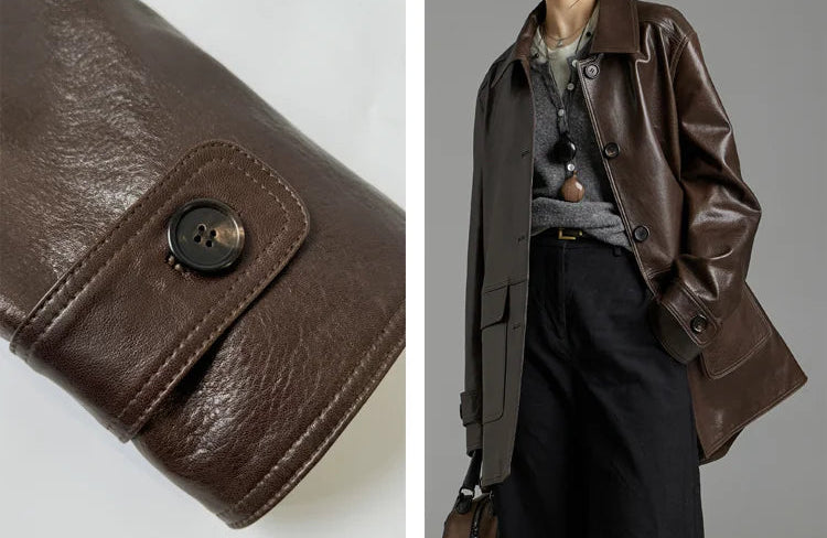 Women's 100% Natural Sheepskin Retro Style Mid-length Trench Coat
