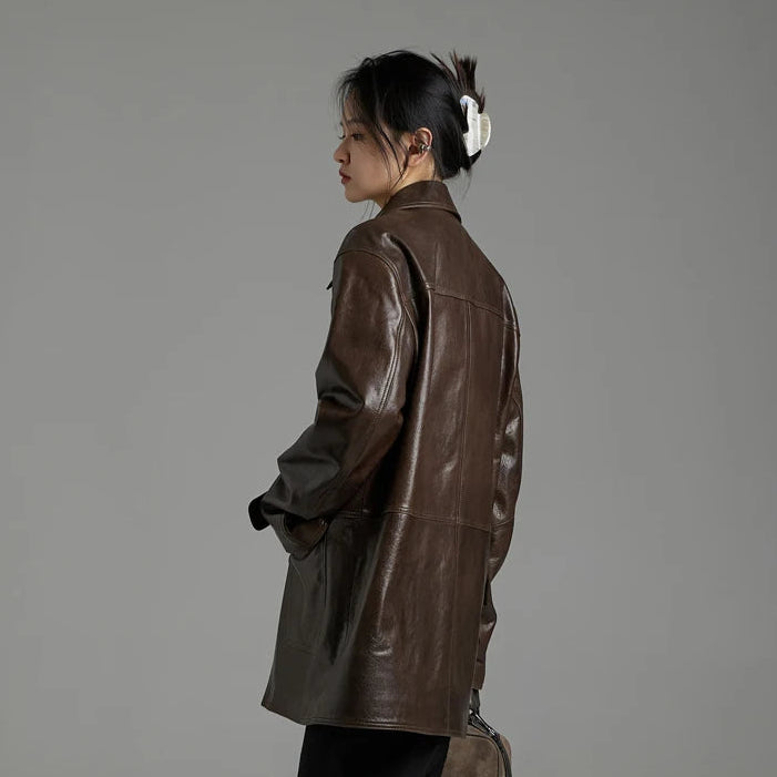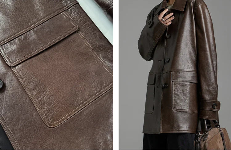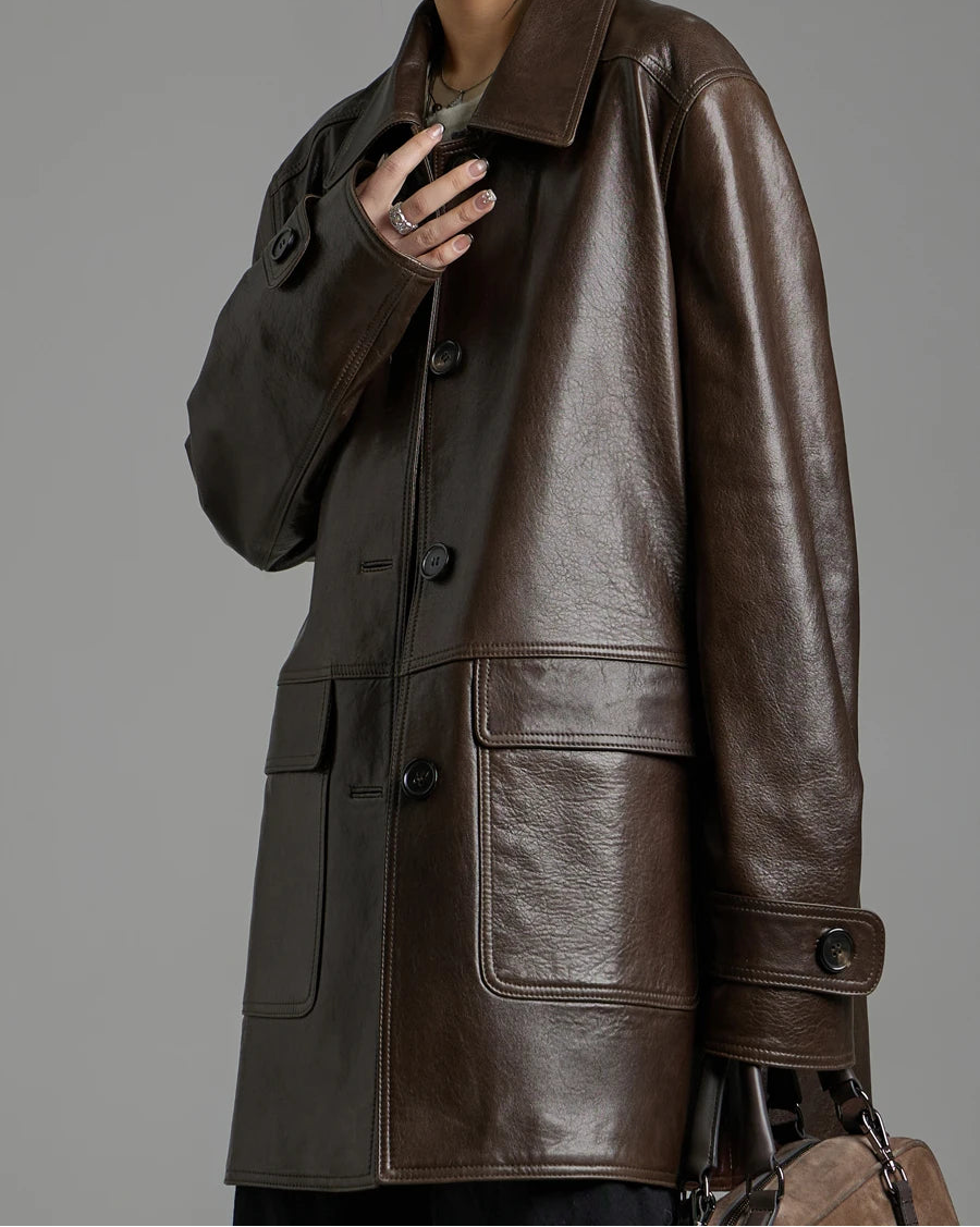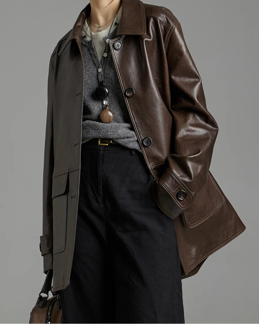Women's 100% Natural Sheepskin Retro Style Mid-length Trench Coat