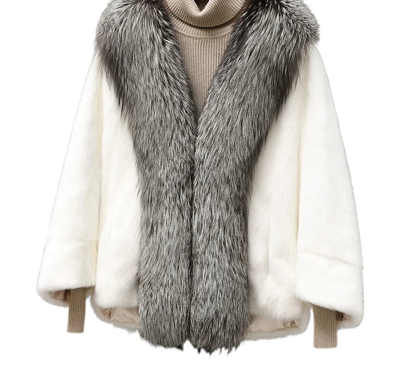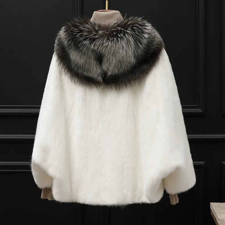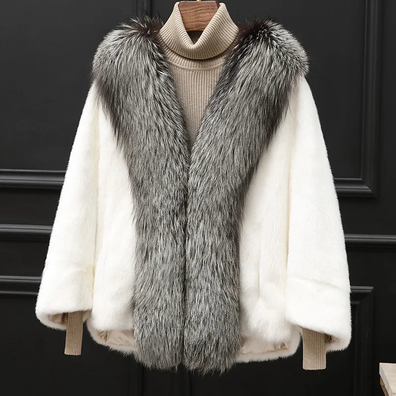 Women's 100% Whole Mink Fur Winter Jacket with Batwing Sleeves