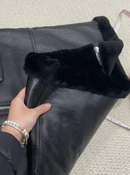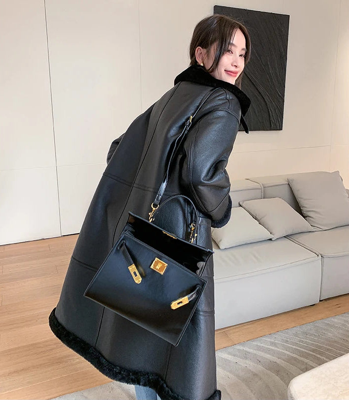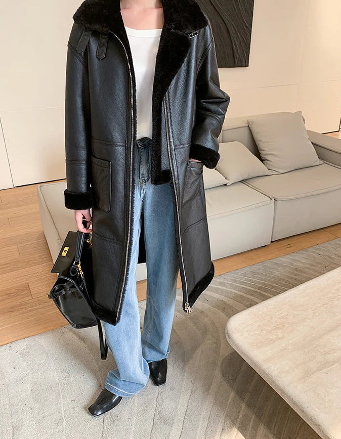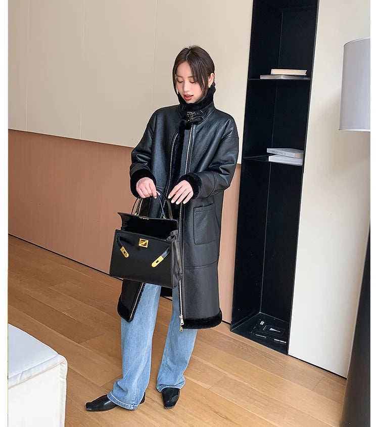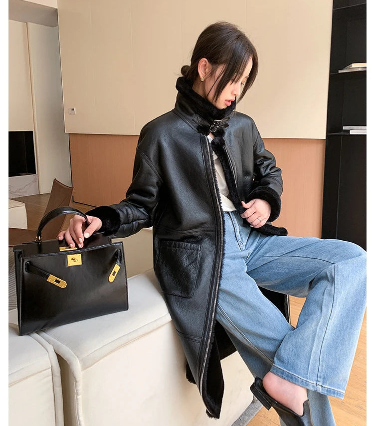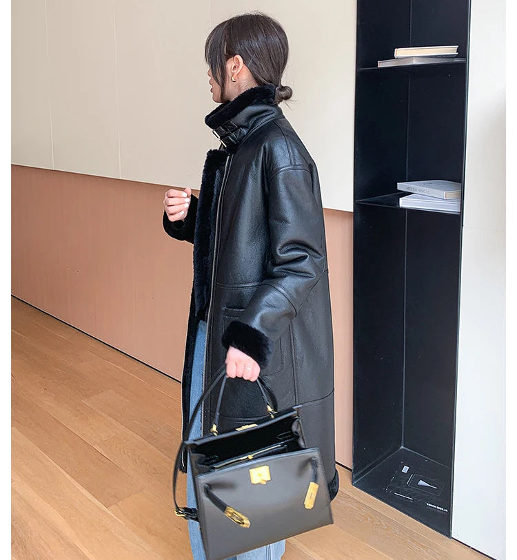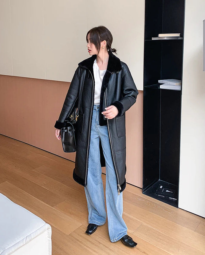 Women's Natural Merino Sheepskin Wool Double-Faced Fur Winter Coat