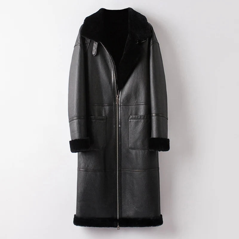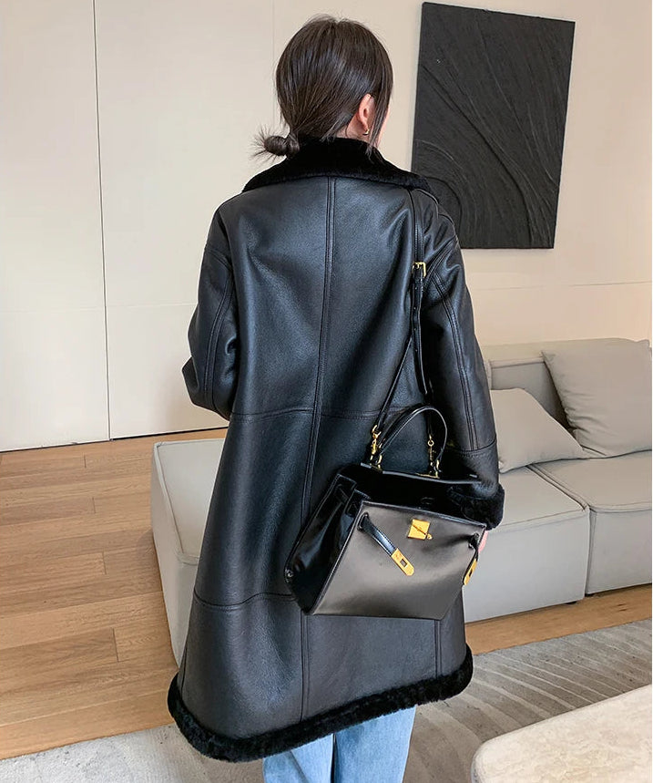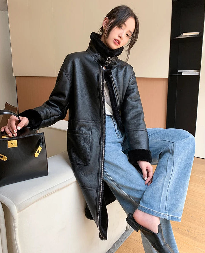 If you are looking for an elegant women's winter coat, then this is for you. The genuine leather makes it perfect for long-time wear. Being double-faced, it is a versatile option to elevate your winter style. The fur collar will add more elegance to your look. Get yours now!