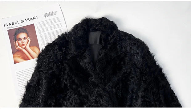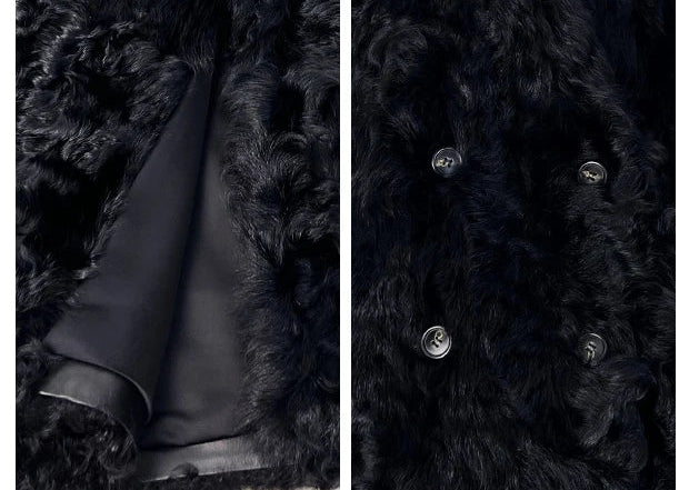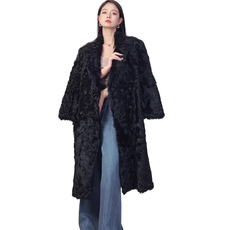 Women's Natural Wool Sheepskin Double-Faced Fur Long Winter Coat