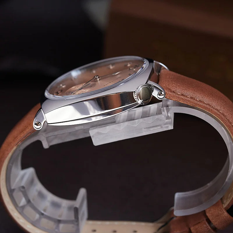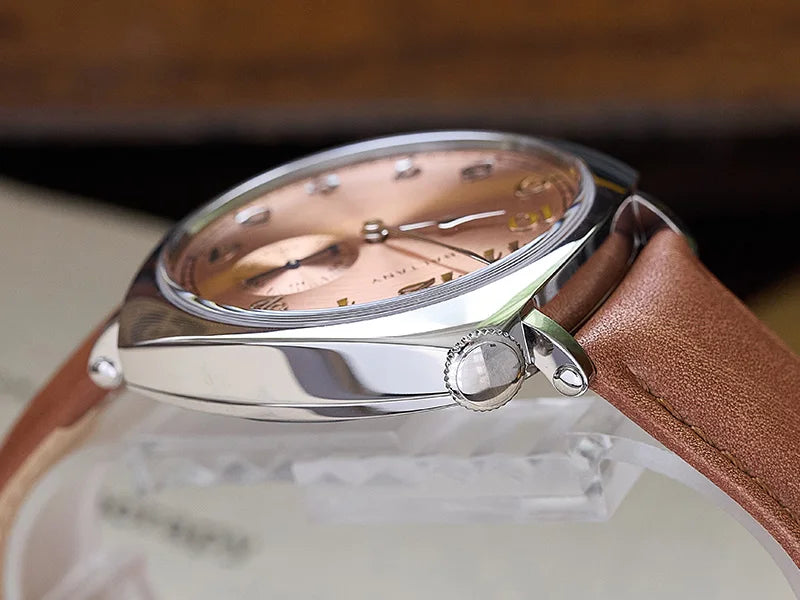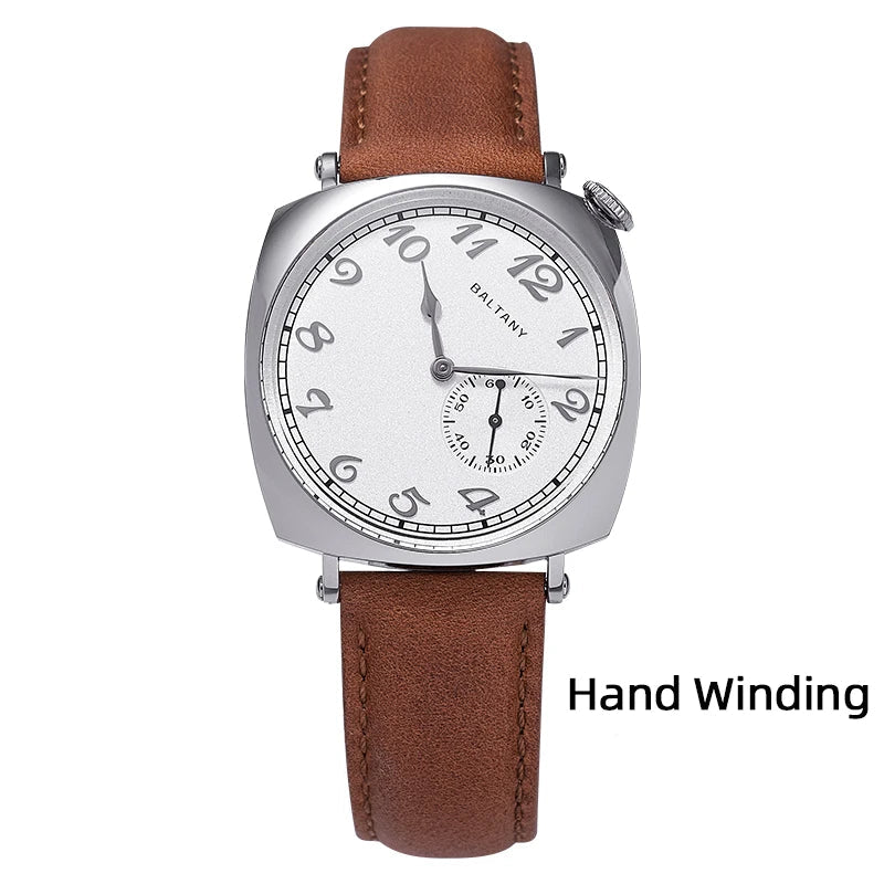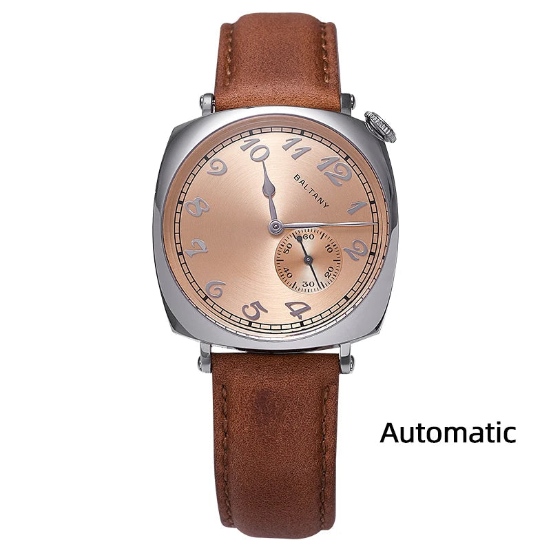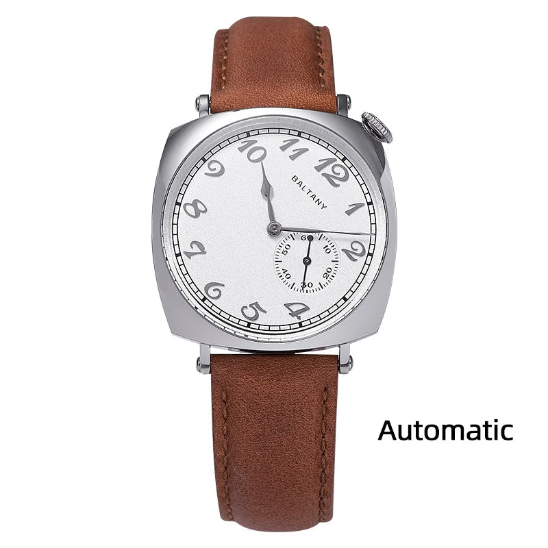 Luxury Seagull Movement 38mm Retro Sapphire Leather Strap Waterproof Vintage Men's Watch