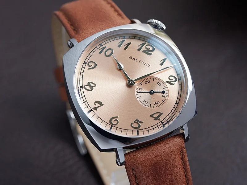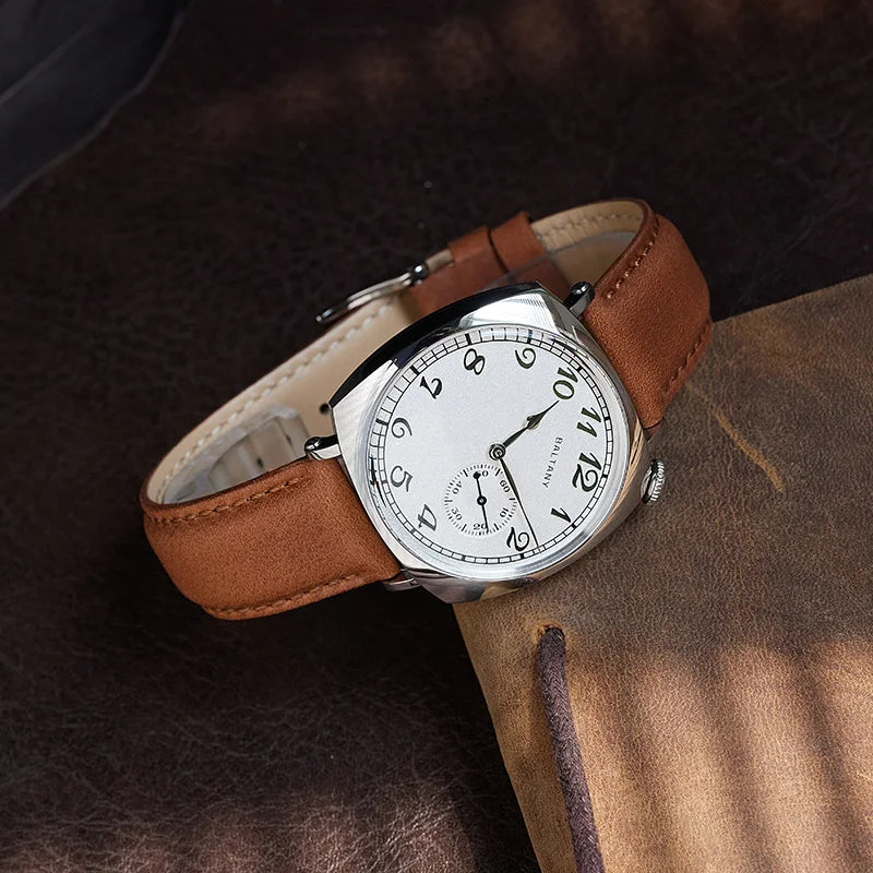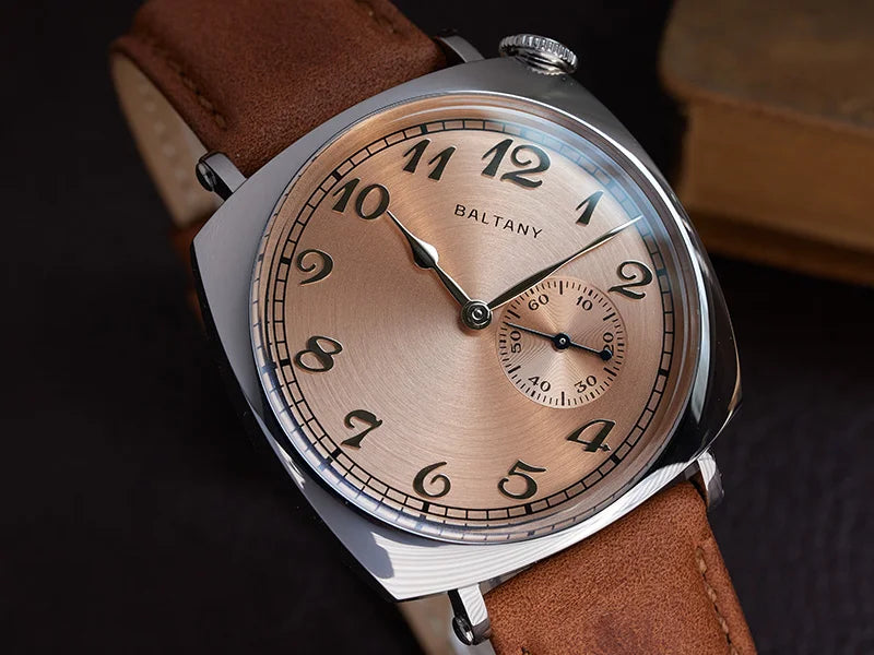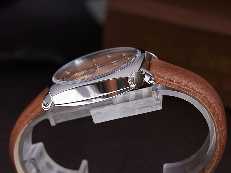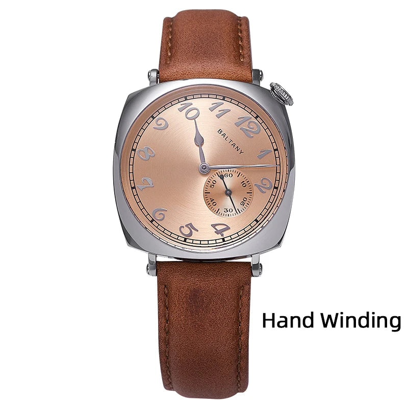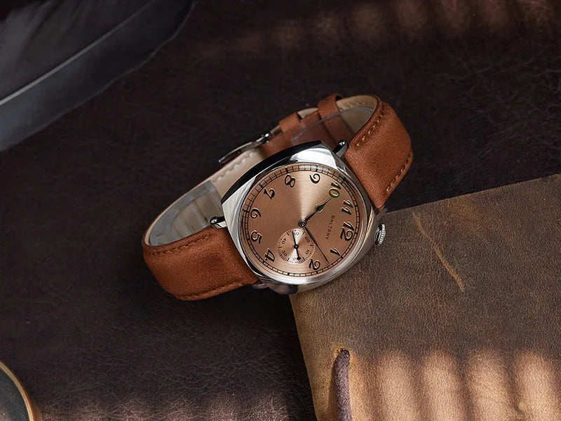 Luxury Seagull Movement 38mm Retro Sapphire Leather Strap Waterproof Vintage Men's Watch
